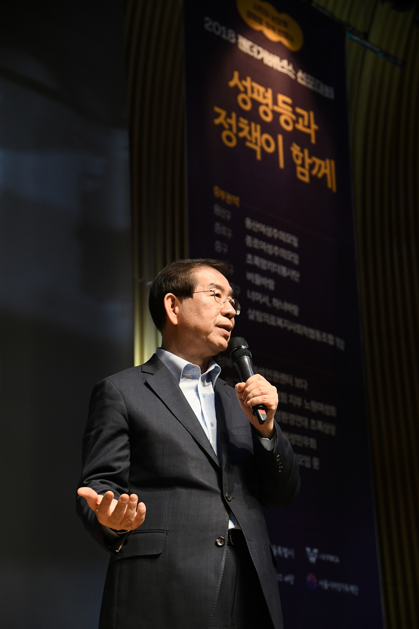 28일 오전 서울시청에서 열린 '젠더 거버넌스' 선포대회에서 박원순 서울시장이 인사말을 하고 있다. 서울시 제공