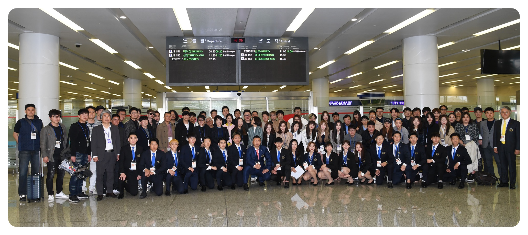 31일 오전 남북평화협력기원 남측예술단 평양공연팀이 평양 순안 공항에 도착.단체 기념촬영을 하고 있다 2018.3.31 평양공연 사진 공동취재단