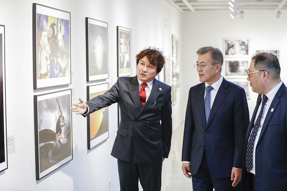 문재인 대통령이 2일 오후 서울 종로구 소재 세종문화회관 미술2관에서 열린 제54회 한국보도사진전을 관람 하고 있다.