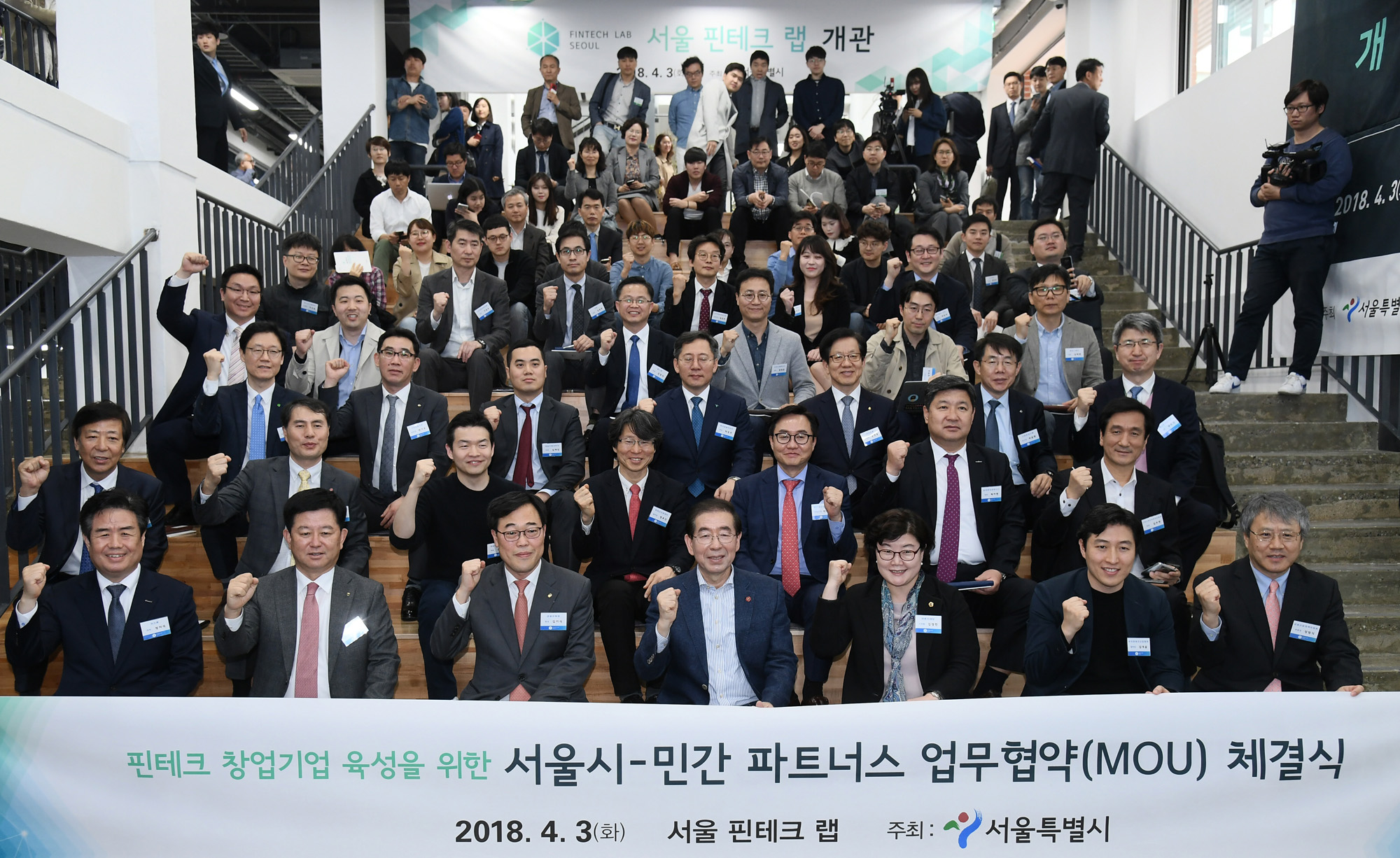 박원순 서울시장이 3일 오후 서울 마포구 서울창업허브 내 서울핀테크 랩 개관식에서 인사말을 하고 있다. 서울시 제공