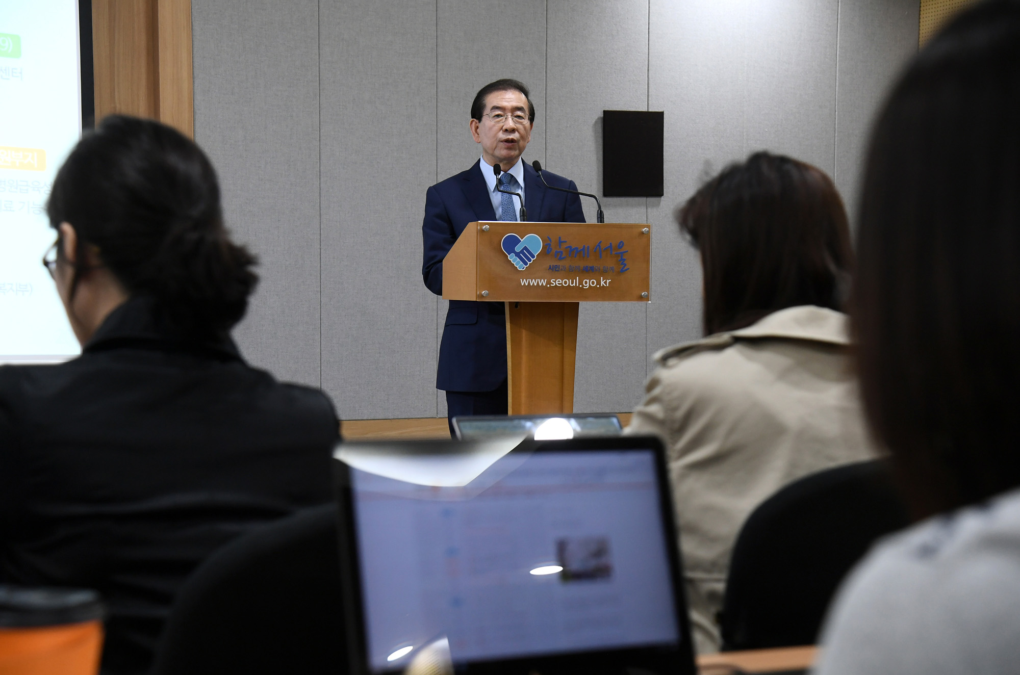 박원순 서울시장이 4일 서울시청 브리핑룸에서 '건강 서울 조성 종합계획'을 발표하고 있다. 서울시 제공