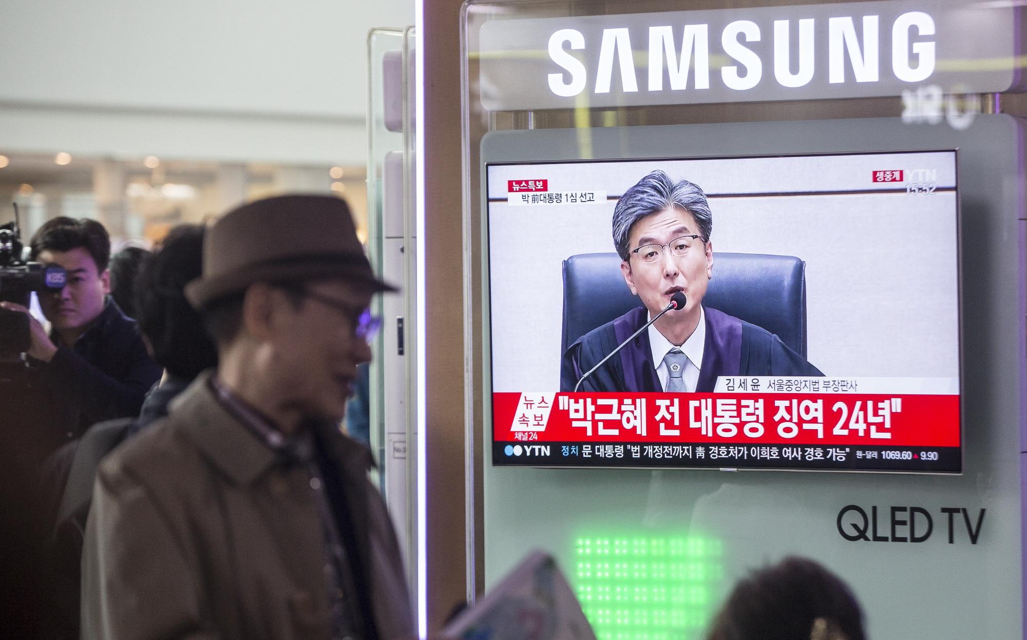 박근혜 전 대통령 1심 시청하는 시민(서울역)