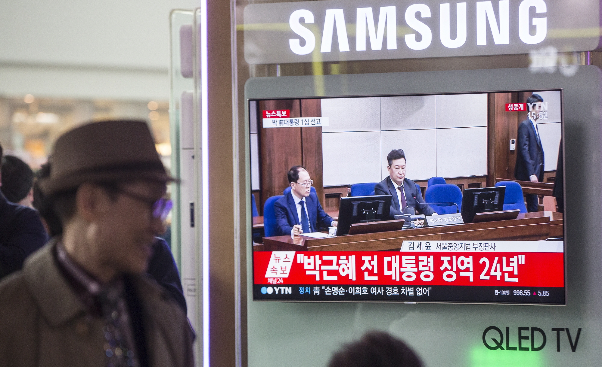 박근혜 전 대통령 1심 시청하는 시민(서울역)