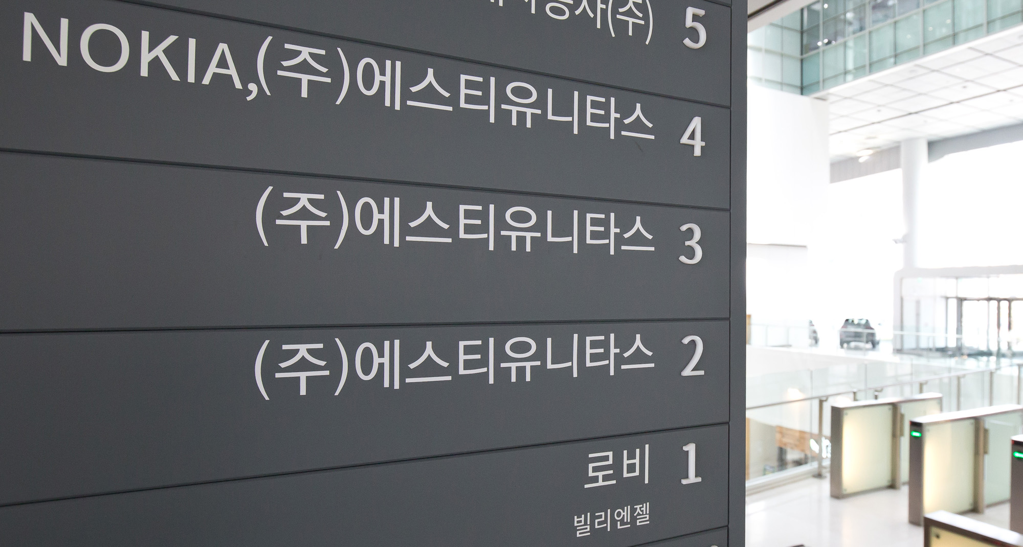 [eoimage=서울](일요신문) 임준선기자 = 9일 오전 강남구 대치동 948 에 위치한 오토웨이 타워 내부의 (주) 에스티 유니타스 현판.