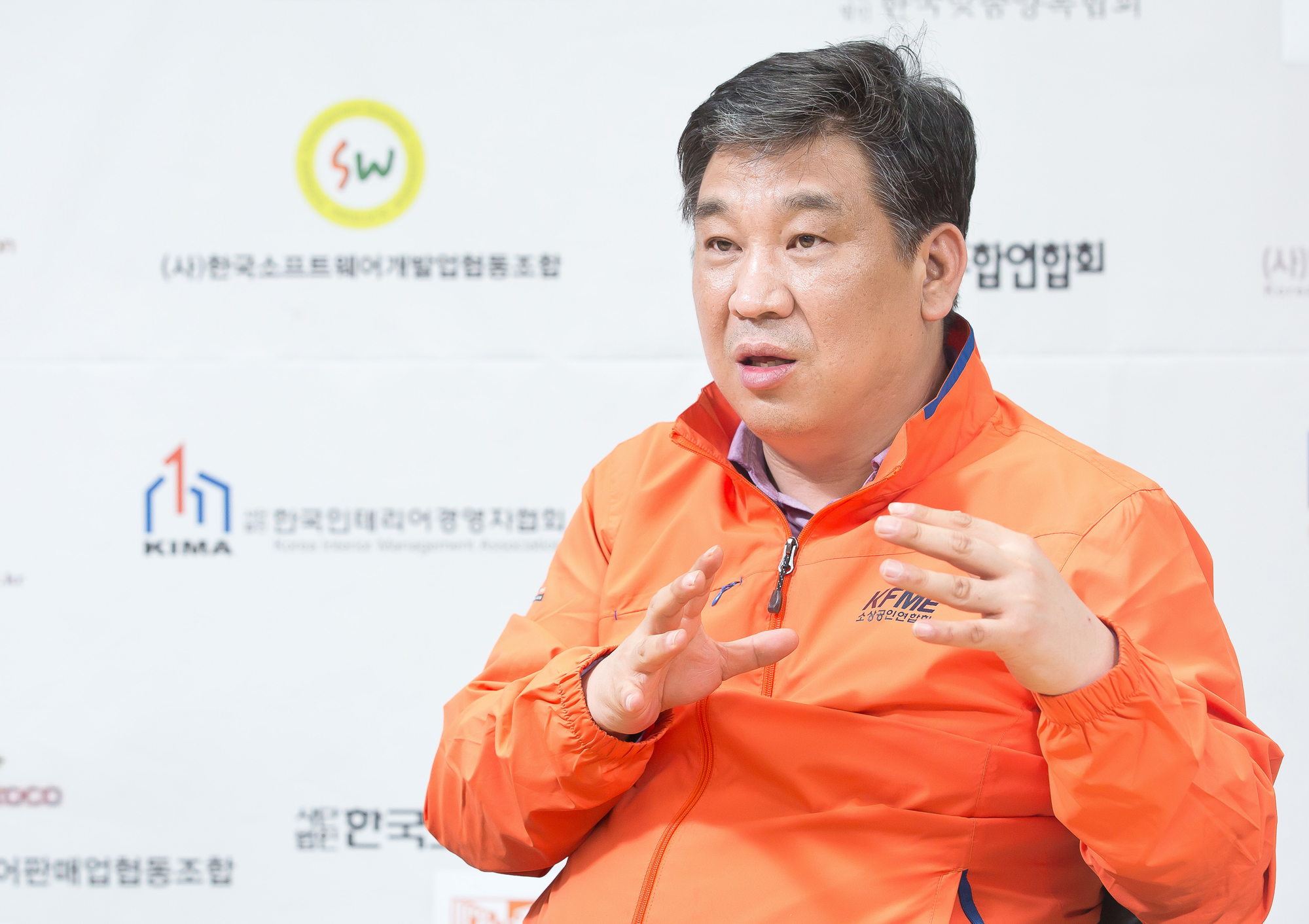 [서울=eoimage] (일요신문) 임준선 기자 =10일 오후 동작구 신대방동에 위치한 협회에서 최승재 소상공인 연합회장이 일요신문과 인터뷰를 하고 있다. 2018.04.10