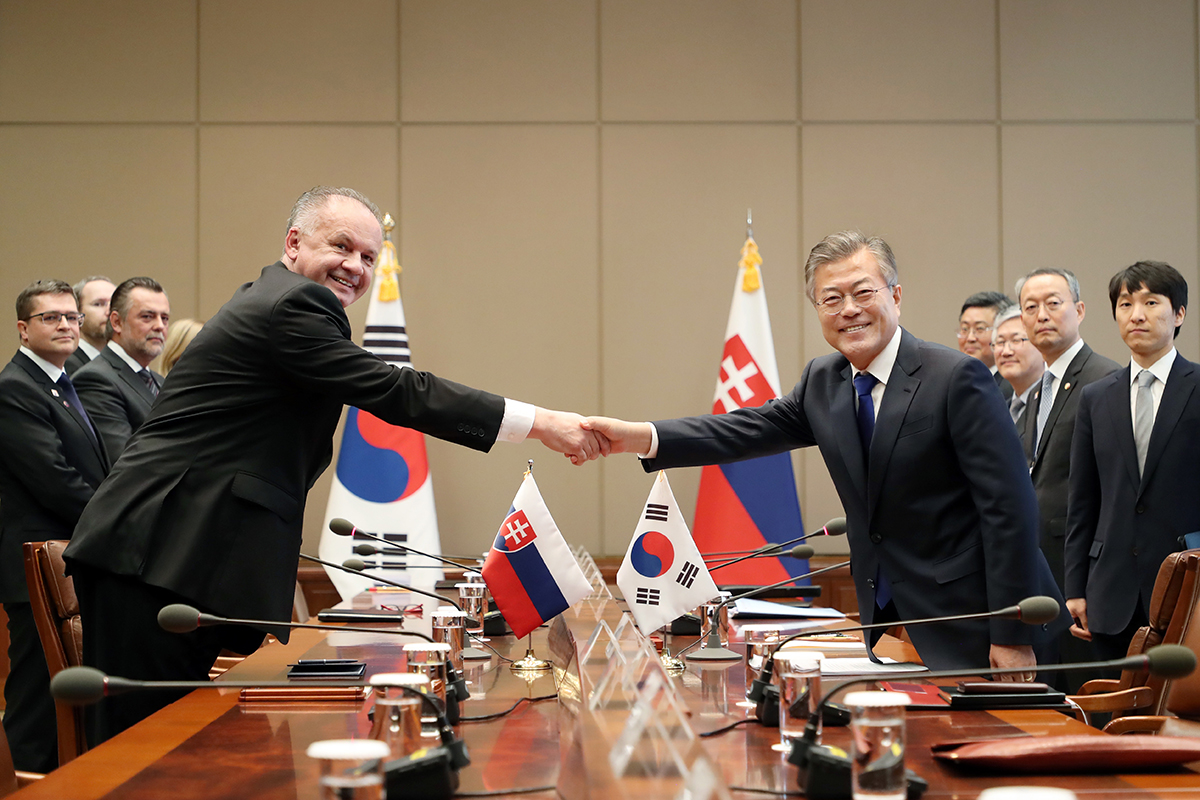 문재인 대통령과 안드레이 키스카 슬로바키아 대통령이 10일 오전 청와대에서 정상회담을 하고 있다
