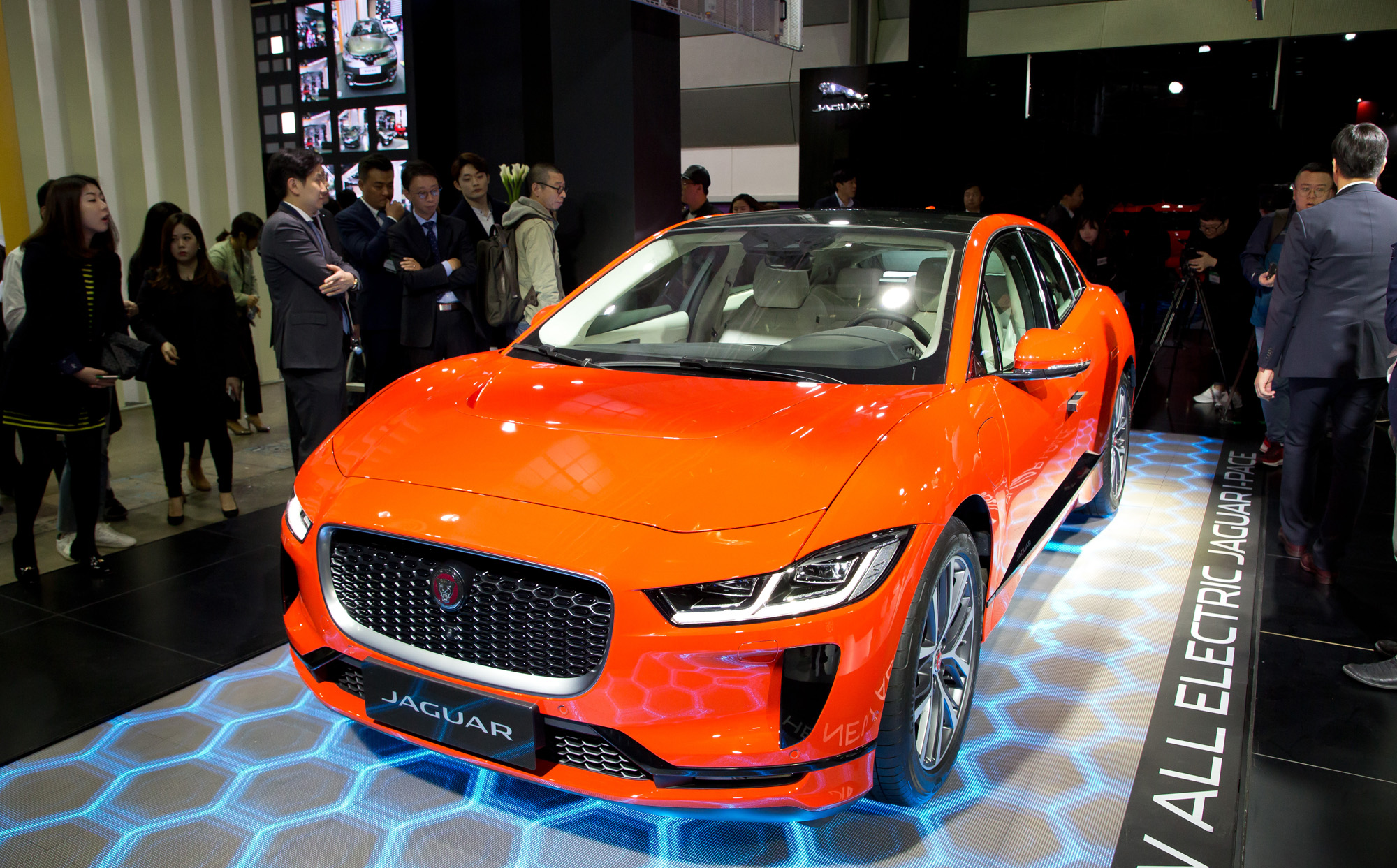[eoimage=서울](이오이미지) 임준선기자 =12일 오전 서울 강남구 코엑스에서 열린 EV 트렌드 코리아 2018에서 공개된 재규어의 전기차 I-Pace(아이 페이스).