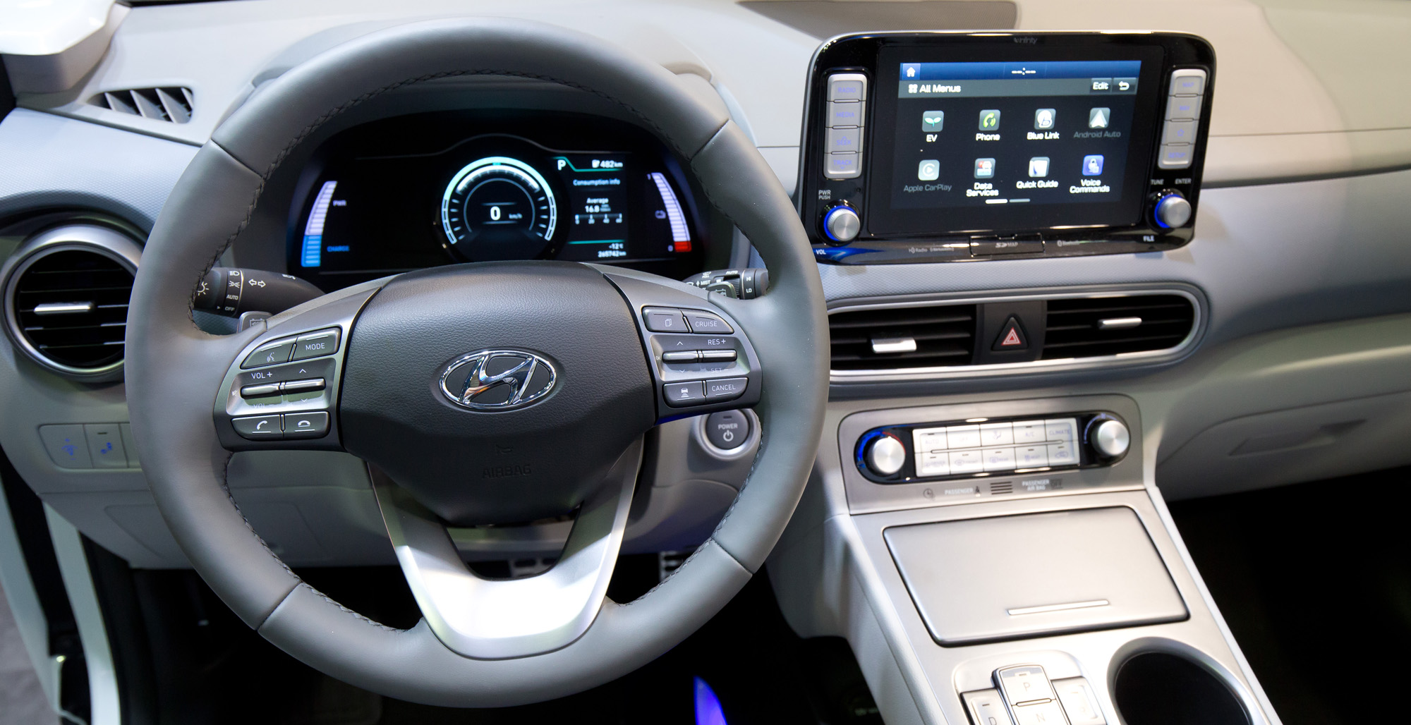 [eoimage=서울](이오이미지) 임준선기자 =현대자동차가 12일 오전 서울 삼성동 코엑스에서 열린 전기자동차 관련 박람회 EV 트렌드 코리아 2018에서 '코나 일렉트릭' 신차발표회를 진행하고 있다.