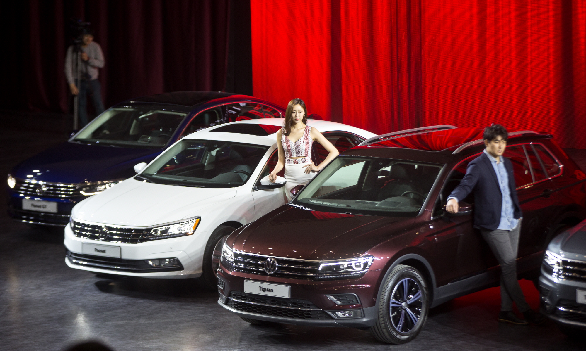 [서울=eoimage] 고성준 기자 = 18일 오전 서울 중구 동대문디자인플라자(DDP)에서 열린 폭스바겐코리아의 올해 출시하는 5종의 핵심 신차 라인업 공개 기자간담회에서 모델들이 포즈를 취하고 있다. 2018.4.18