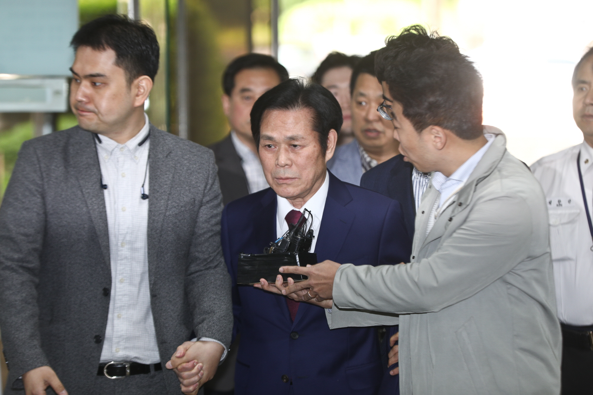 [서울=eoimage] 고성준 기자 = 오랜 기간 여러 신도를 성폭행한 혐의를 받는 만민중앙성결교회 이재록 목사가 3일 오전 서초구 서울중앙지방법원에서 열린 구속 전 피의자심문(영장실질심사)에 출석하기 위해 법정으로 향하고 있다. 2018.5.3