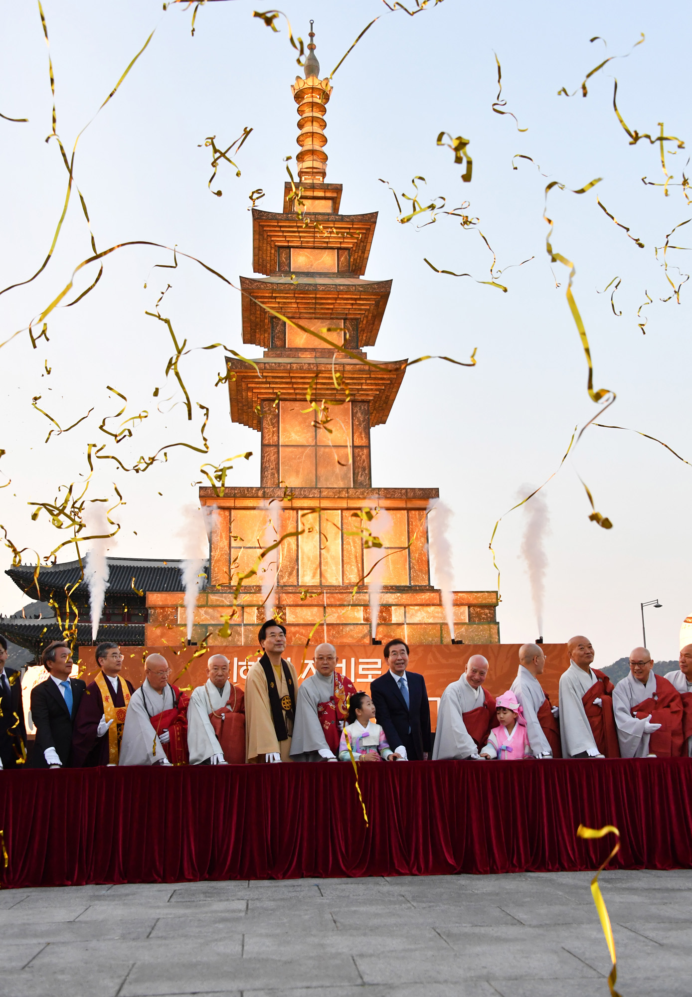 박원순 서울시장이 25일 오후 서울 광화문광장에서 열린 '광화문 봉축 점등식'에 참석하고 있다. 서울시 제공