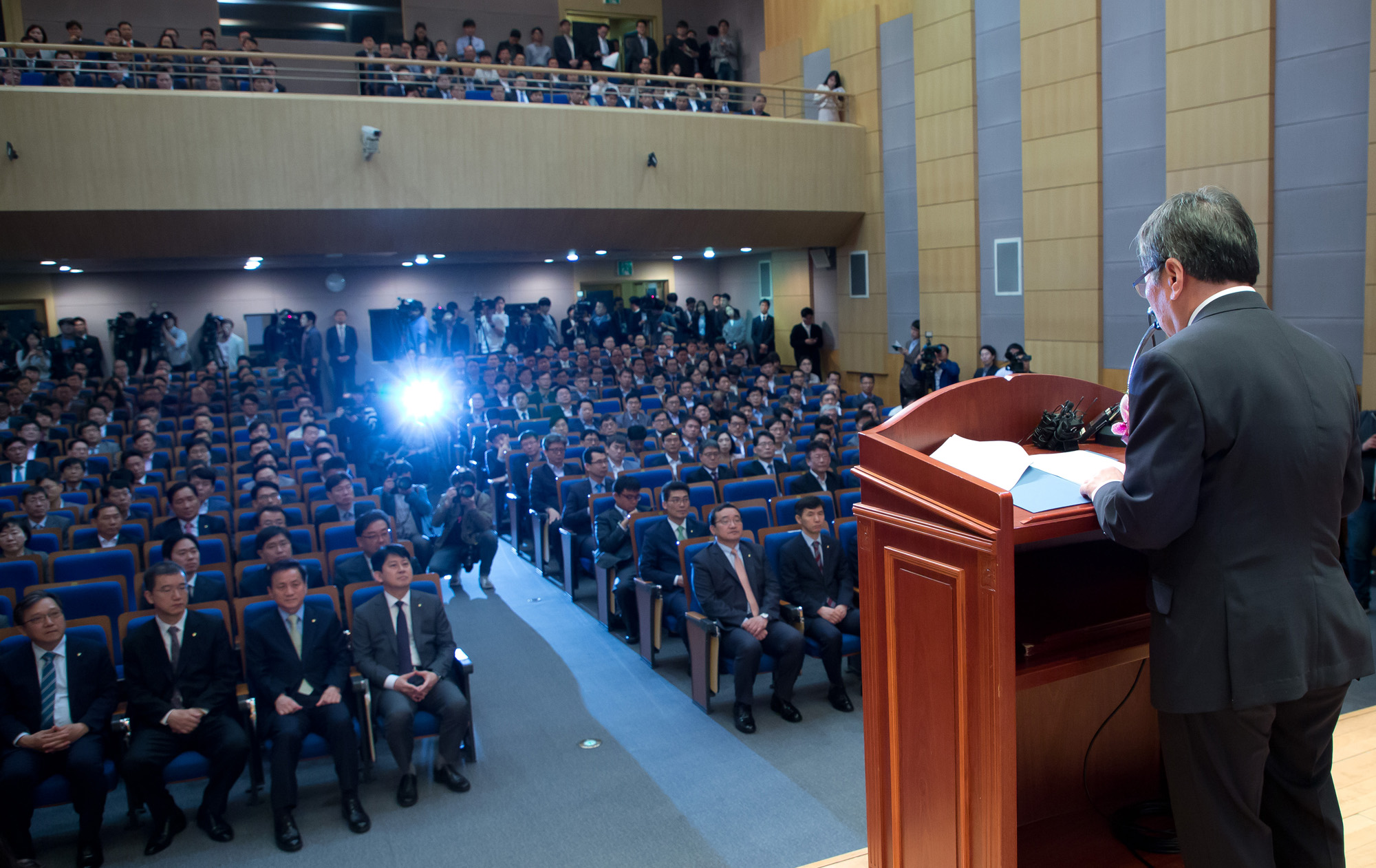 [eoimage=서울](이오이미지) 임준선기자 =윤석헌 신임 금융감독원장이 8일 오전 서울 영등포구 여의도 금융감독원에서 열린 취임식에서 취임사를 하고 있다.