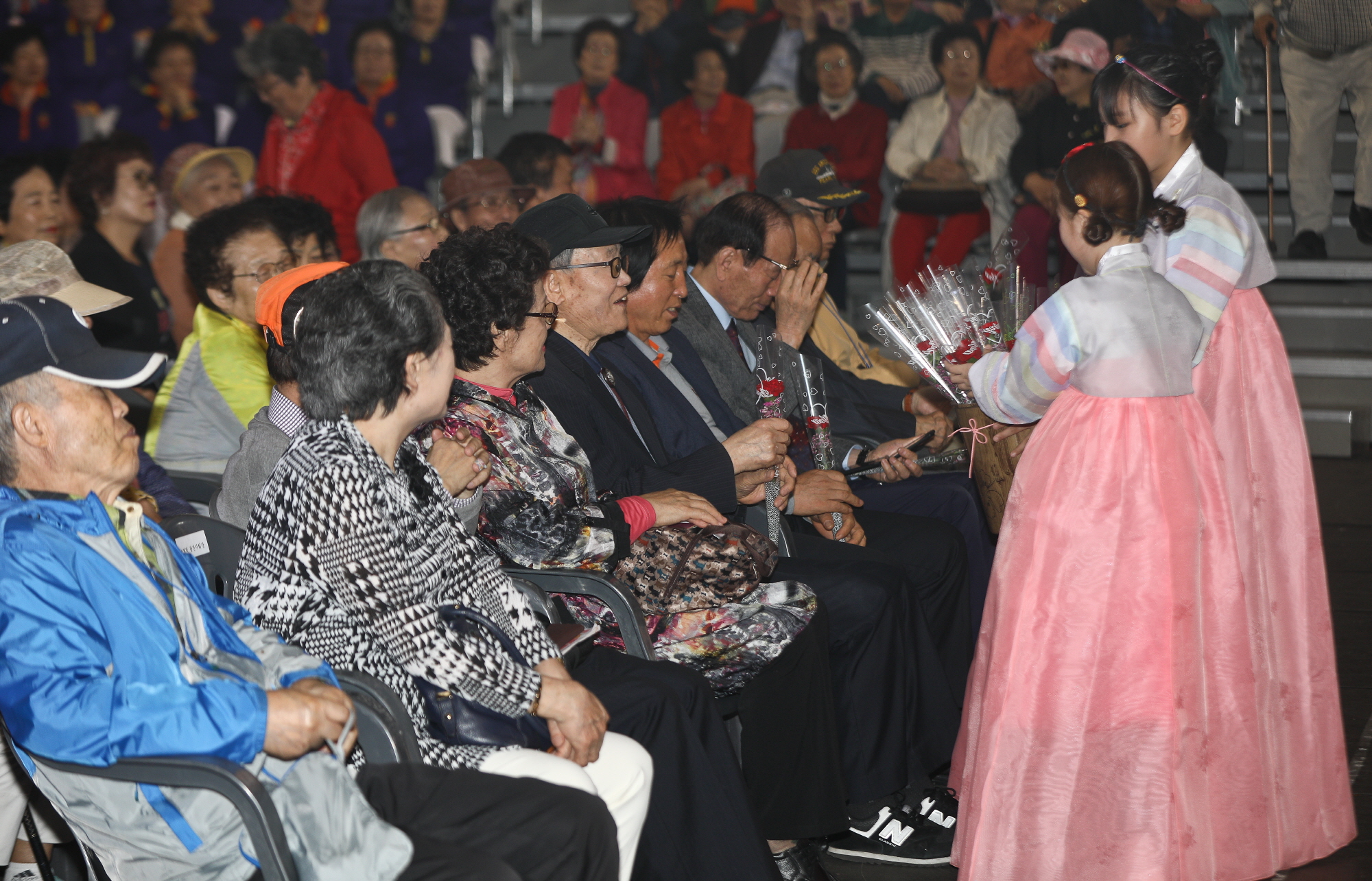 [서울=eoimage] 고성준 기자 = 어버이날을 맞은 8일 오전 서울 송파구 올림픽공원에서 열린 제46회 어버이날 기념행사에 박원순 서울시장이 참석하고 있다. 2018.5.8