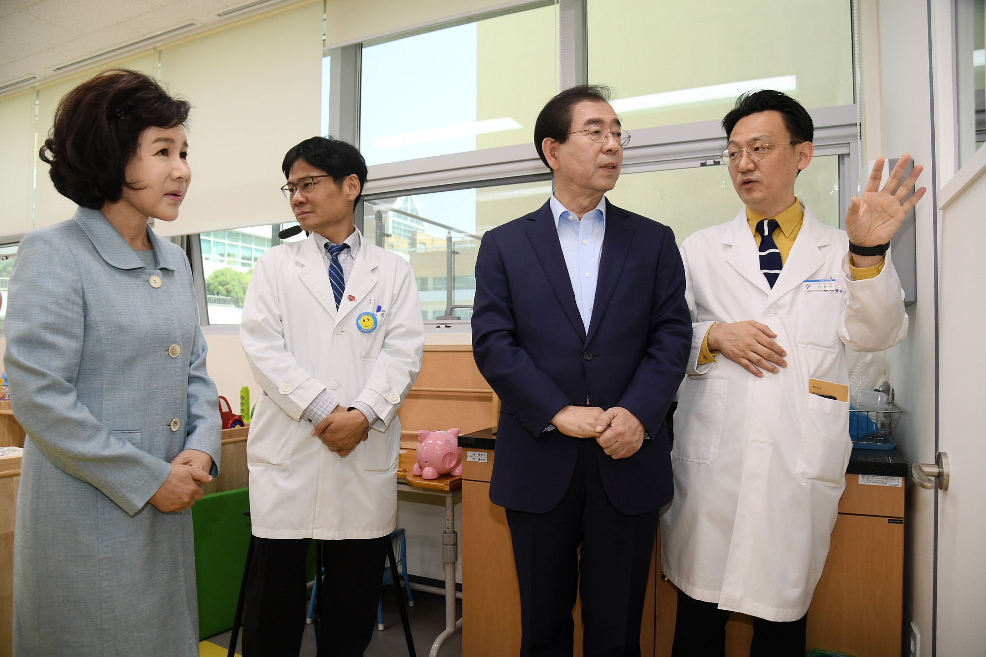 박원순 서울시장이 4일 오전 서울특별시 어린이병원을 방문해 어린이 공공의료시설을 살피고 있다. 서울시 제공