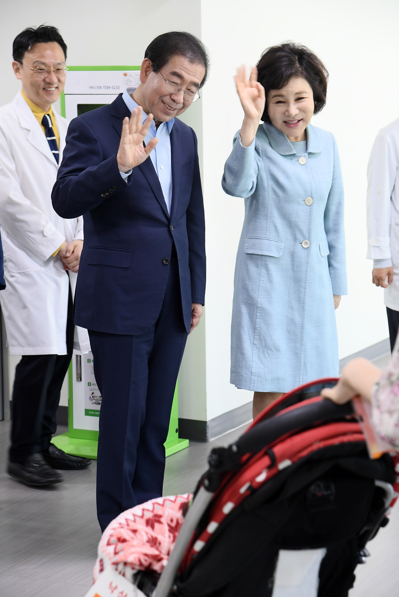 박원순 서울시장이 4일 오전 서울특별시 어린이병원을 방문해 어린이 공공의료시설을 살피고 있다. 서울시 제공