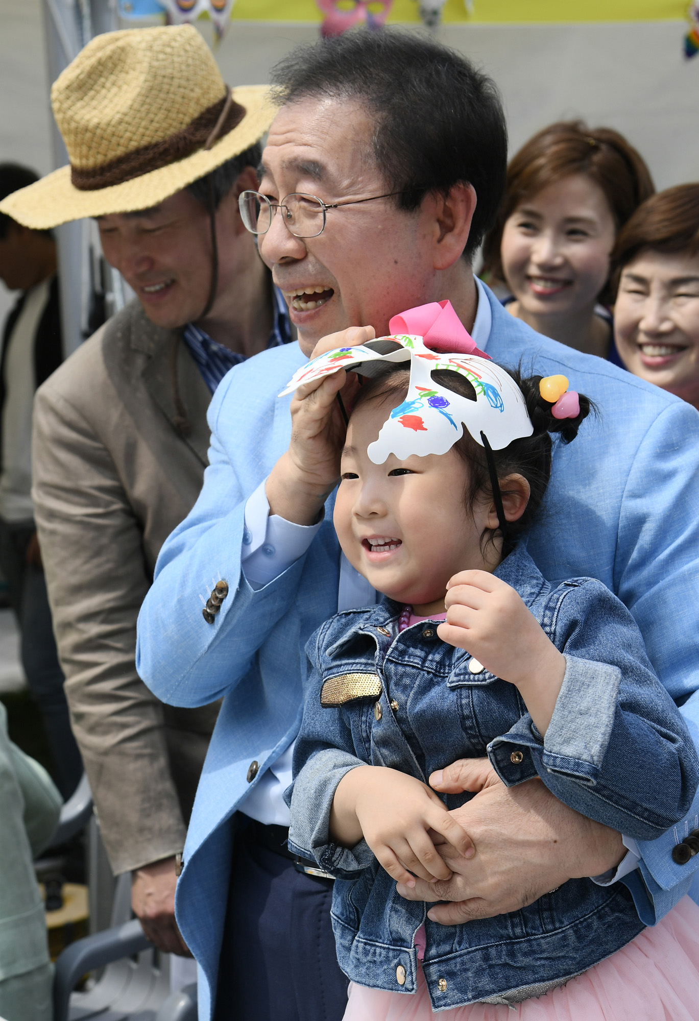 박원순 시장은 제96회 어린이날인 5일 오후 2시 광진구 서울어린이대공원에서 열리는 서울동화축제에서 아이들에게 직접 동화책을 읽어주고, 캐릭터 가면 만들기도 함께했다. 서울시 제공