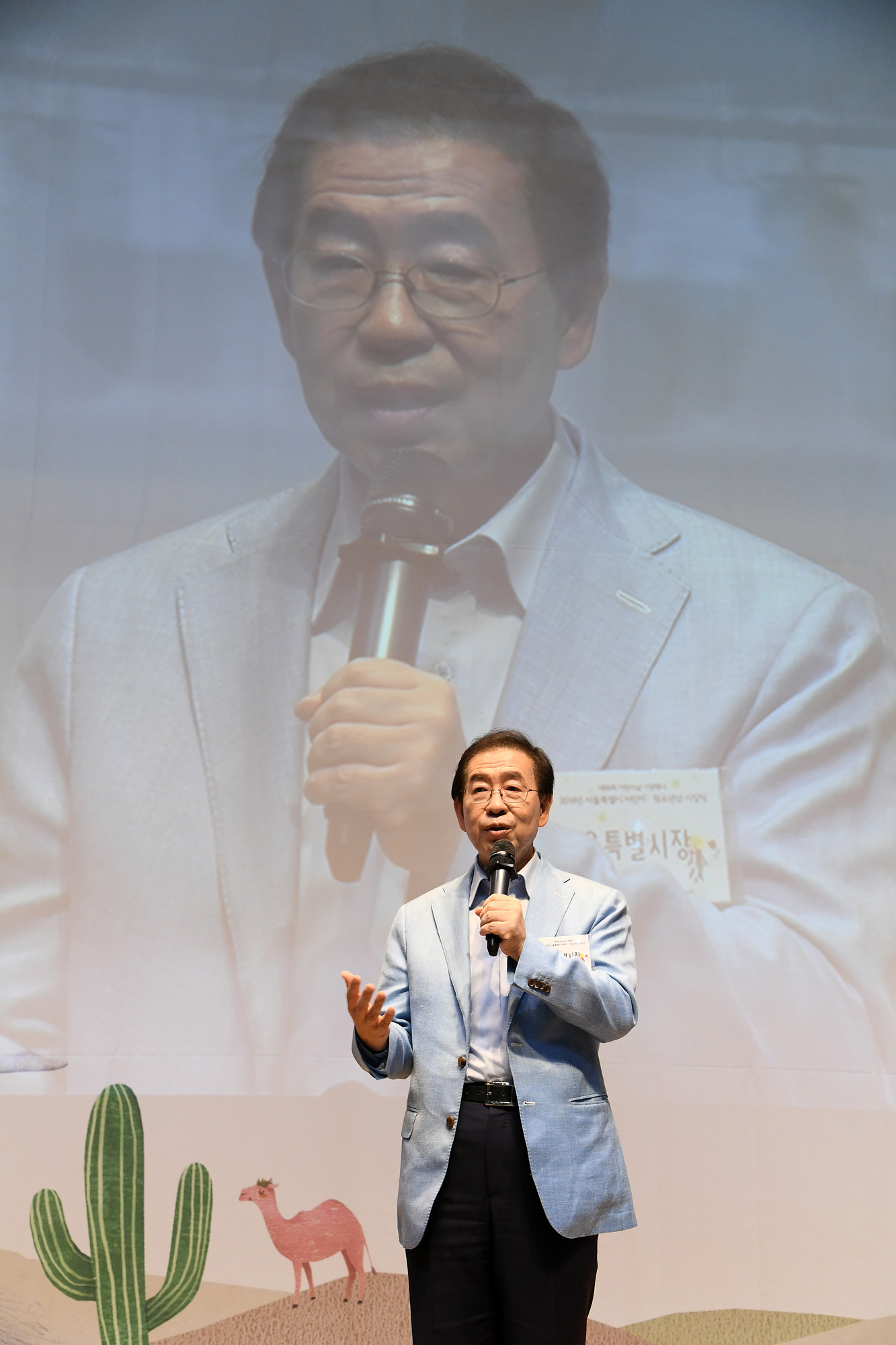 박원순 서울시장이 5일 오전 제96회 어린이날 기념식에서 시상을 하고 있다. 서울시 제공