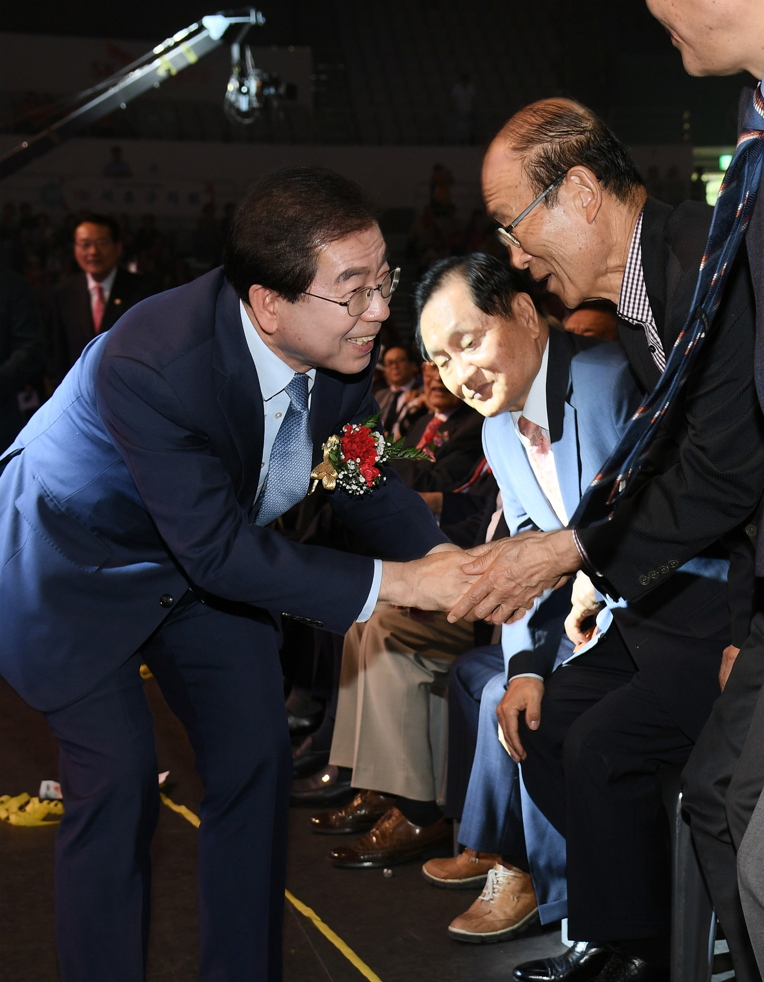 박원순 서울시장을 비롯한 주요 내빈들이 8일 서울 송파구 올림픽공원 SK핸드볼경기장에서 열린 '어버이날 기념식'에 참석하고 있다. 서울시 제공