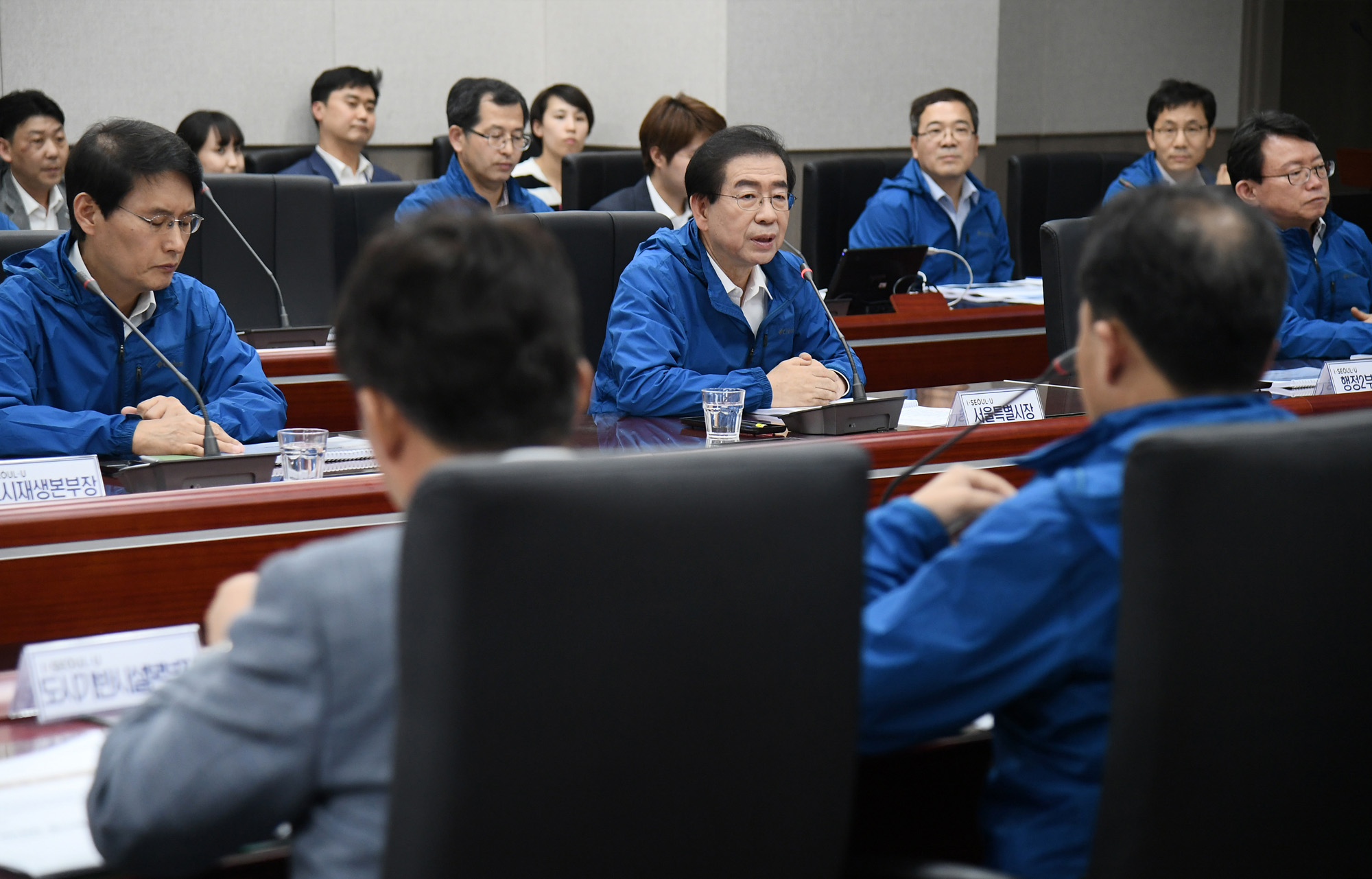 박원순 서울시장이 10일 오후 서울 시청 신청사 충무기밀실에서 열린 풍수해 안전대책 추진현황 보고회에서 발언하고 있다. 서울시 제공