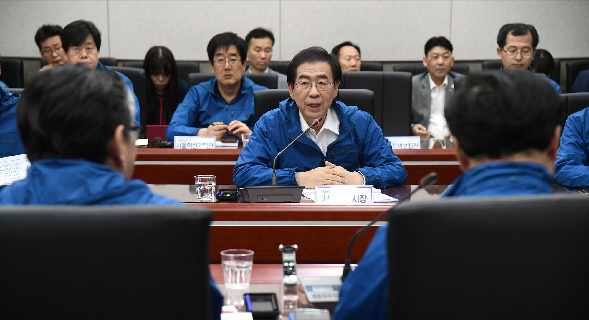 박원순 서울시장이 10일 오후 서울 시청 신청사 충무기밀실에서 열린 풍수해 안전대책 추진현황 보고회에서 발언하고 있다. 서울시 제공
