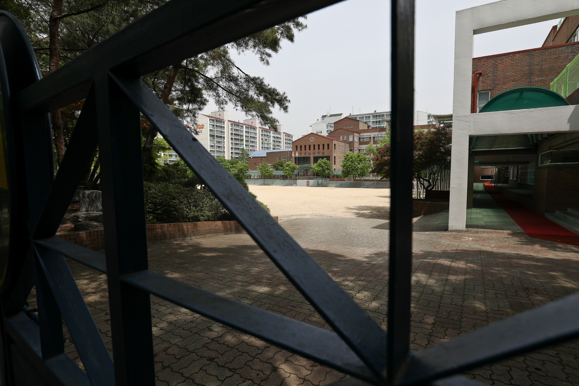 [서울=eoimage] 고성준 기자 = 스승의날을 맞은 15일 오전 서울 중랑구의 한 초등학교가 휴교로 인해 교문이 닫혀있다. 2018.5.15