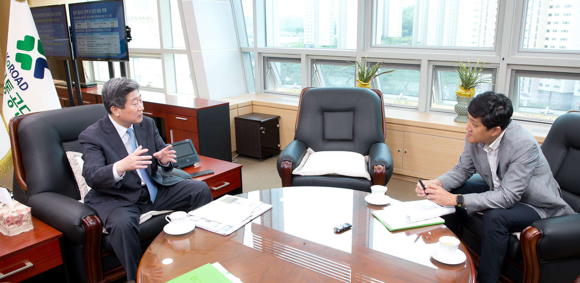[원주=eoimage] (시사저널) 임준선 기자 =18일 오전 원주 도로교통공단에서 윤종기 이사장이 시사저널과 인터뷰를 하고 있다.
