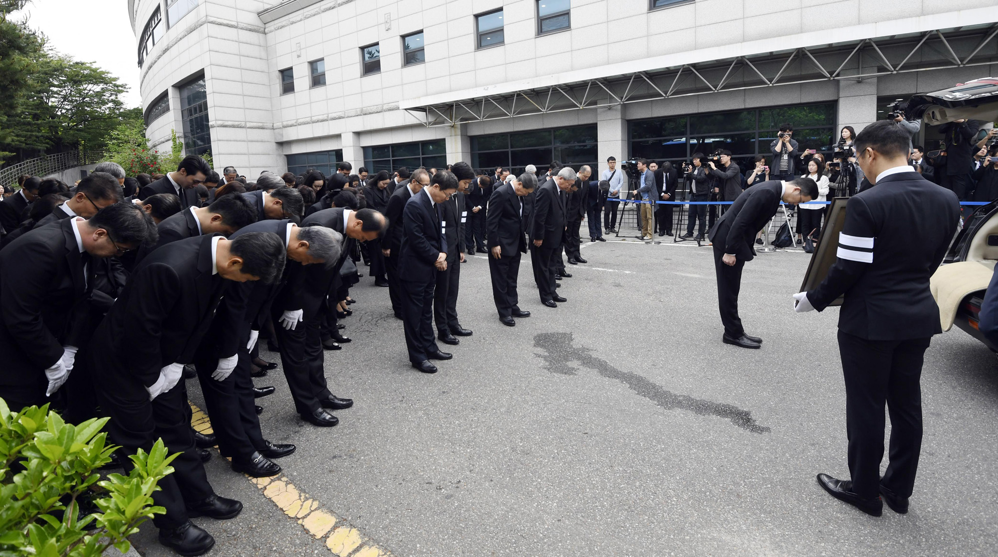| 사진설명 | 구본무 LG 회장의 발인이 22일 서울 종로구 서울대병원 장례식장에서 진행됐다. 맏사위 윤관 블루벤처스 대표가 영정사진을 들고 구본준 LG 부회장, 조성진 LG전자 부회장을 비롯한 친지, LG 계열사 임직원 100여명이 고개를 숙여 구본무 회장을 배웅하고 있다. 사진공동 취재단 2018.05.22 |