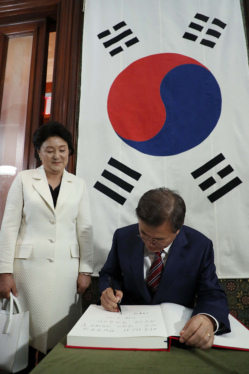 문재인 대통령과 부인 김정숙 여사는 22일(현지시간) 오후 미국 워싱턴DC에 있는 주미대한제국공사관을 방문 하고 있다.