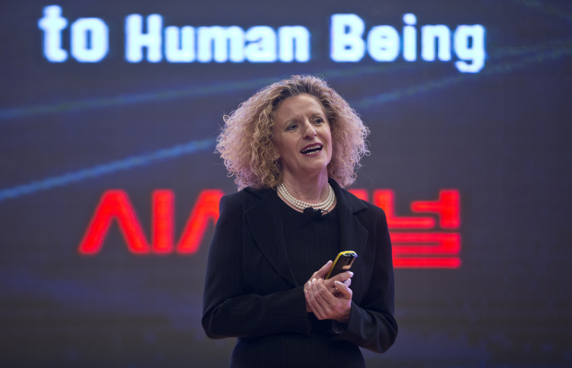 '2018 굿컴퍼니 컨퍼런스(GCC)'에서 잉그리드 드렉셀 바이엘코리아 대표이사가 키노트스피치를 하고있다. 2017.05.31