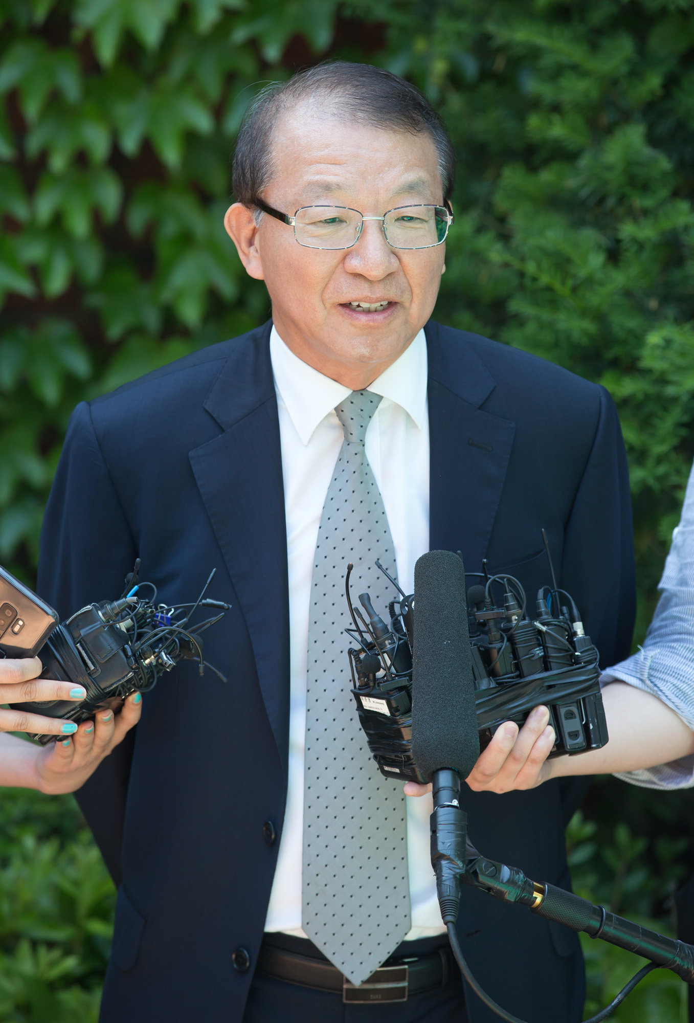 [서울=eoimage] (이오이미지) 임준선기자 =양승태 전 대법원장이 1일 오후 경기도 성남시 자택 인근에서 '사법행정권 남용 의혹' 관련 입장을 발표하고 있다. 2018.06.01