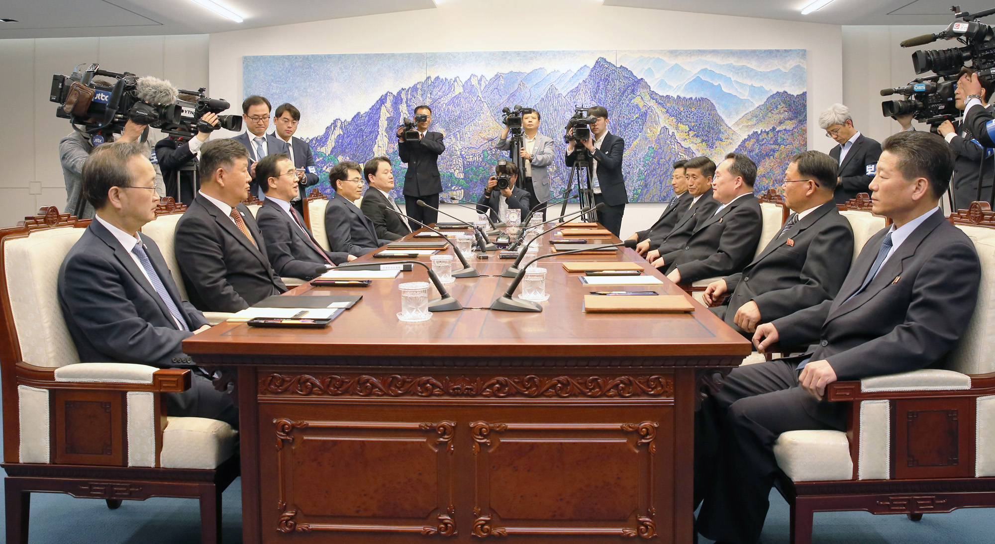 조명균 통일부장관과 리선권 조국평화통일위원회(조평통) 위원장이 1일 오후 판문점 평화의집에서 열린 남북고위급회담 종결회의에서 공동보도문 발표에 앞서 발언을 하고있다. 2018.06.01 사진공동취재단