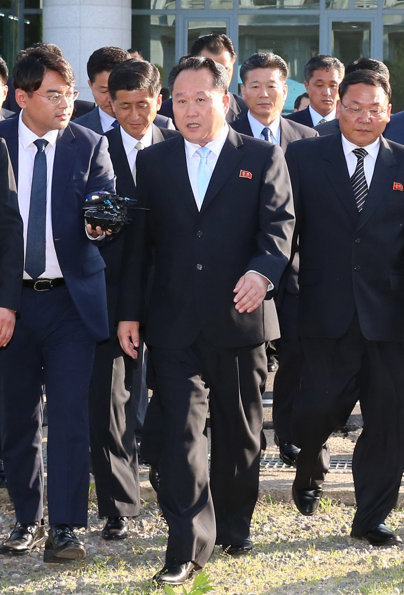 1일 오후 판문점 평화의집에서 열린 남북고위급회담을 마치고 돌아가는 리선권 조국평화통일위원회(조평통) 위원장이 취재진의 질문에 답하고 있다. 2018.06.01 사진공동취재단