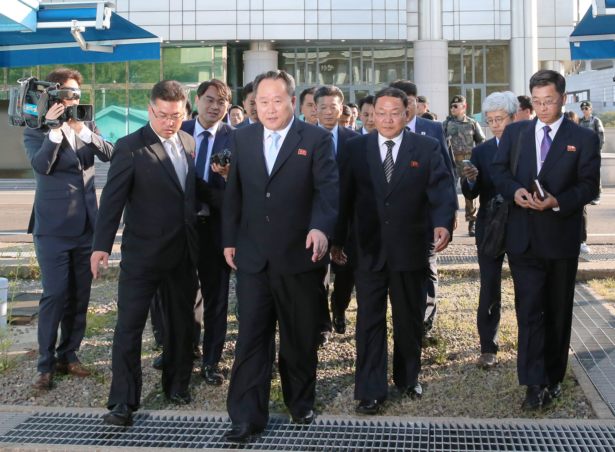 리선권 조국평화통일위원회(조평통) 위원장과 북측 회담대표단이 1일 오후 판문점 평화의집에서 열린 남북고위급회담을 마치고 군사분계선을 넘어 북측으로 돌아가고 있다. 2018.06.01 사진공동취재단