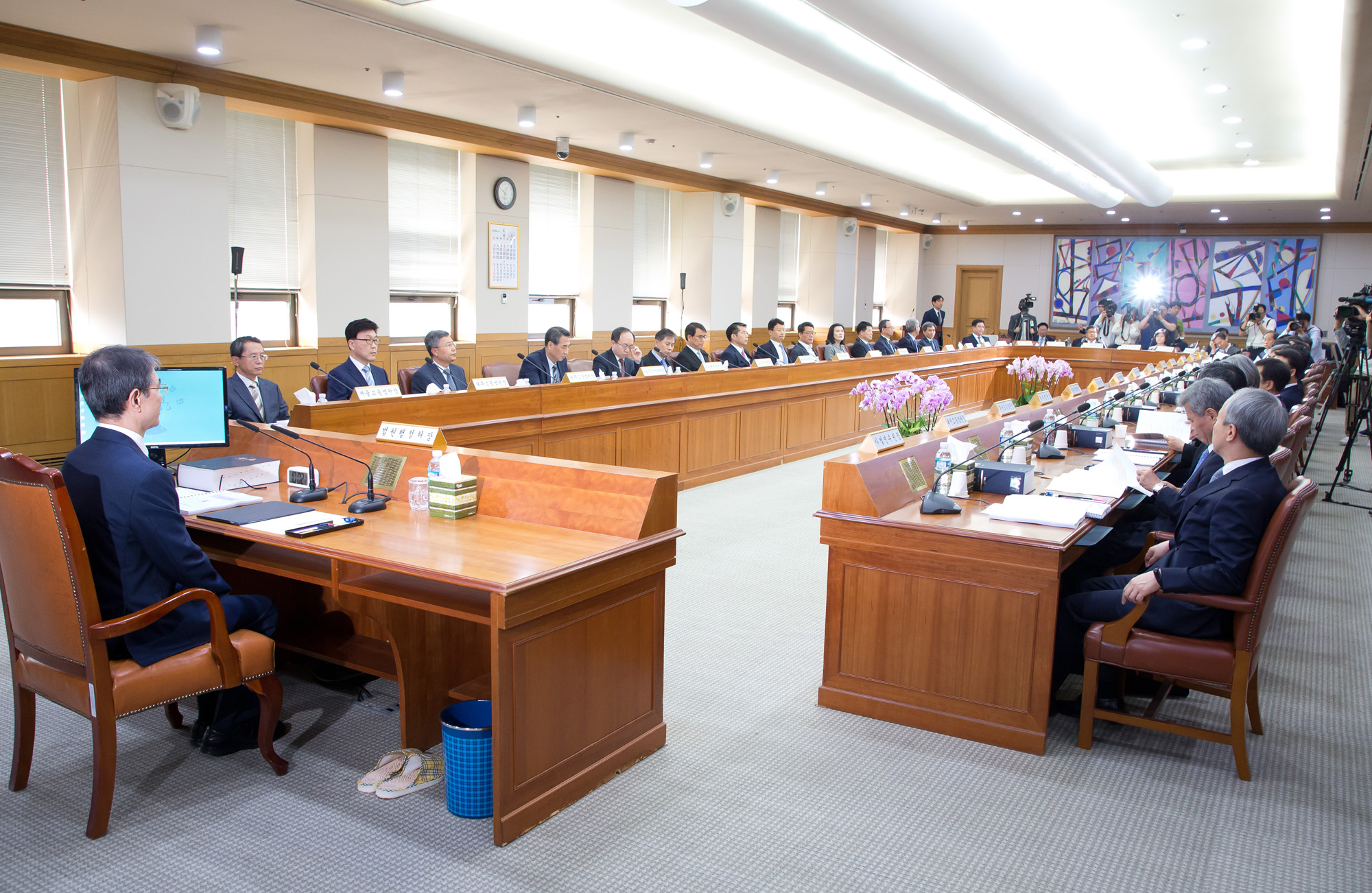 [서울=eoimage] (이오이미지) 임준선기자 =전국 법원장들이 7일 오전 서울 서초구 대법원에서 열린 사법행정권 남용 관련 전국 법원장 간담회에 참석하고 있다.. 2018.06.07