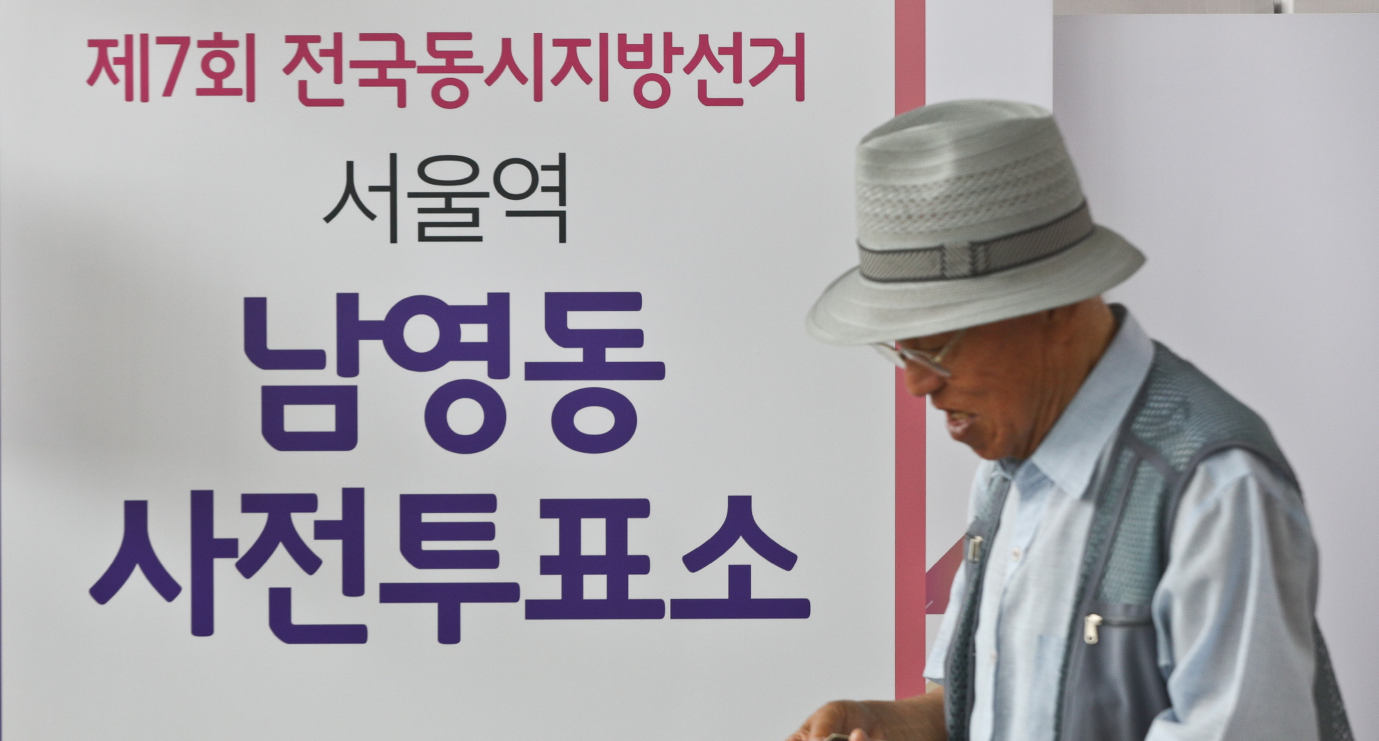 [서울=eoimage] 고성준 기자 = 제7회 전국동시지방선거 사전투표가 시작된 8일 서울 용산구 서울역 대합실에 마련된 사전투표소에서 시민들이 사전투표를 하고있다. 2018.6.8