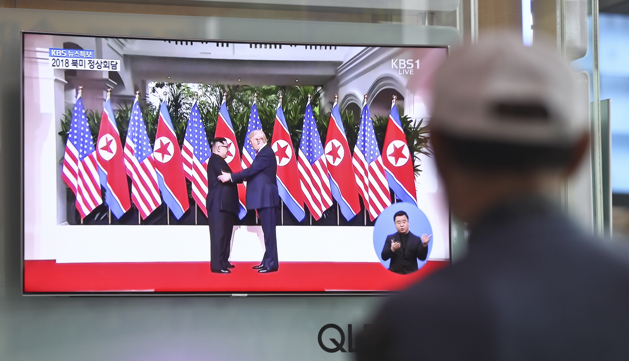 [서울=eoimage] 고성준 기자 = 북미정삼회담이 열린 12일 오전 서울역 대합실에서 시민들이 북미정상회담 생중계를 시청하고 있다. 2018.6.12