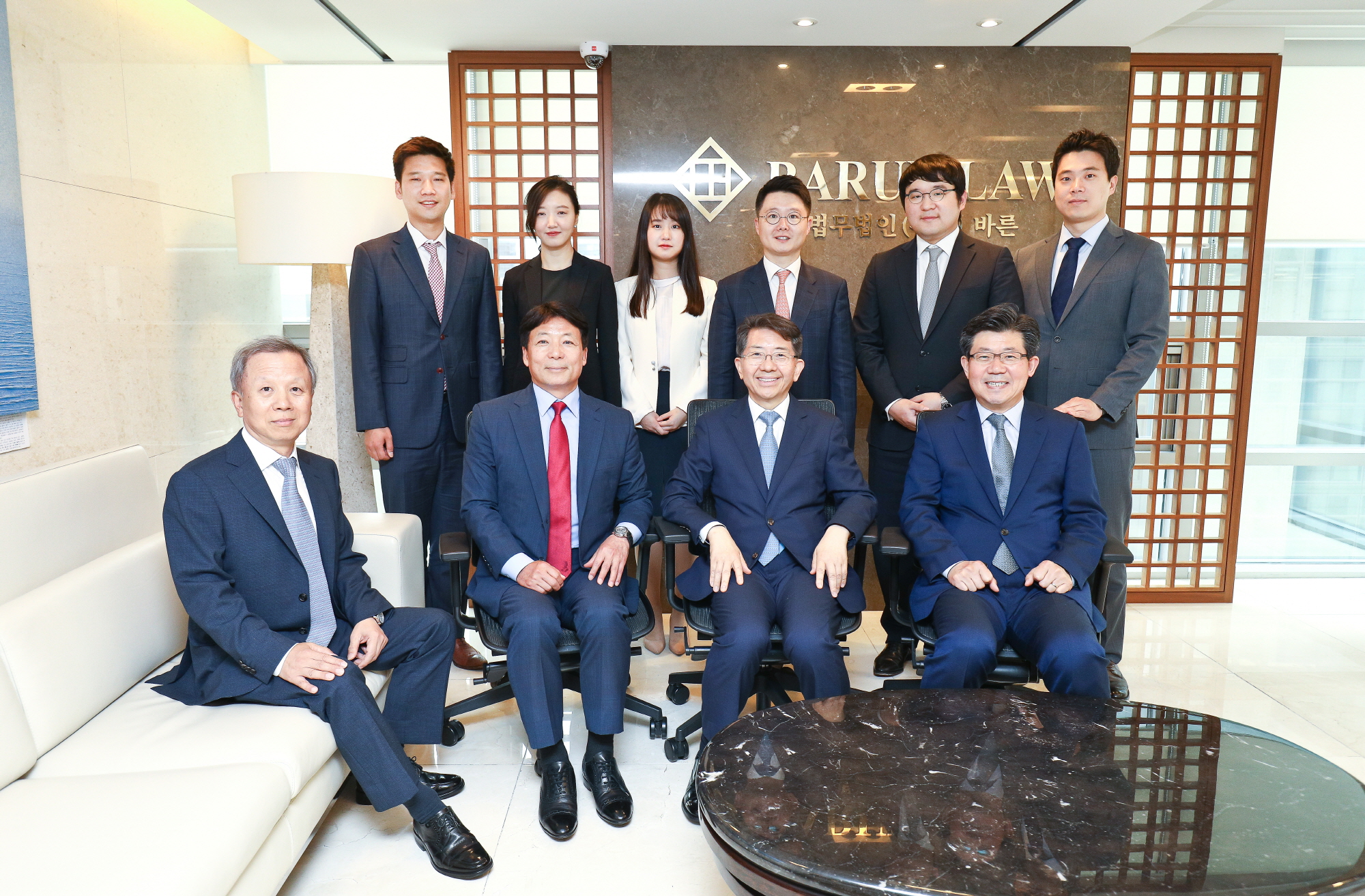 [서울=eoimage] 시사저널 고성준 기자 = 14일 오전 서울 강남구 바른빌딩에서 문성우 법무법인 바른 대표이사 변호사(앞줄 오른쪽 두번째)를 포함한 임직원들이 사진촬영을 하고있다. 2018.6.14