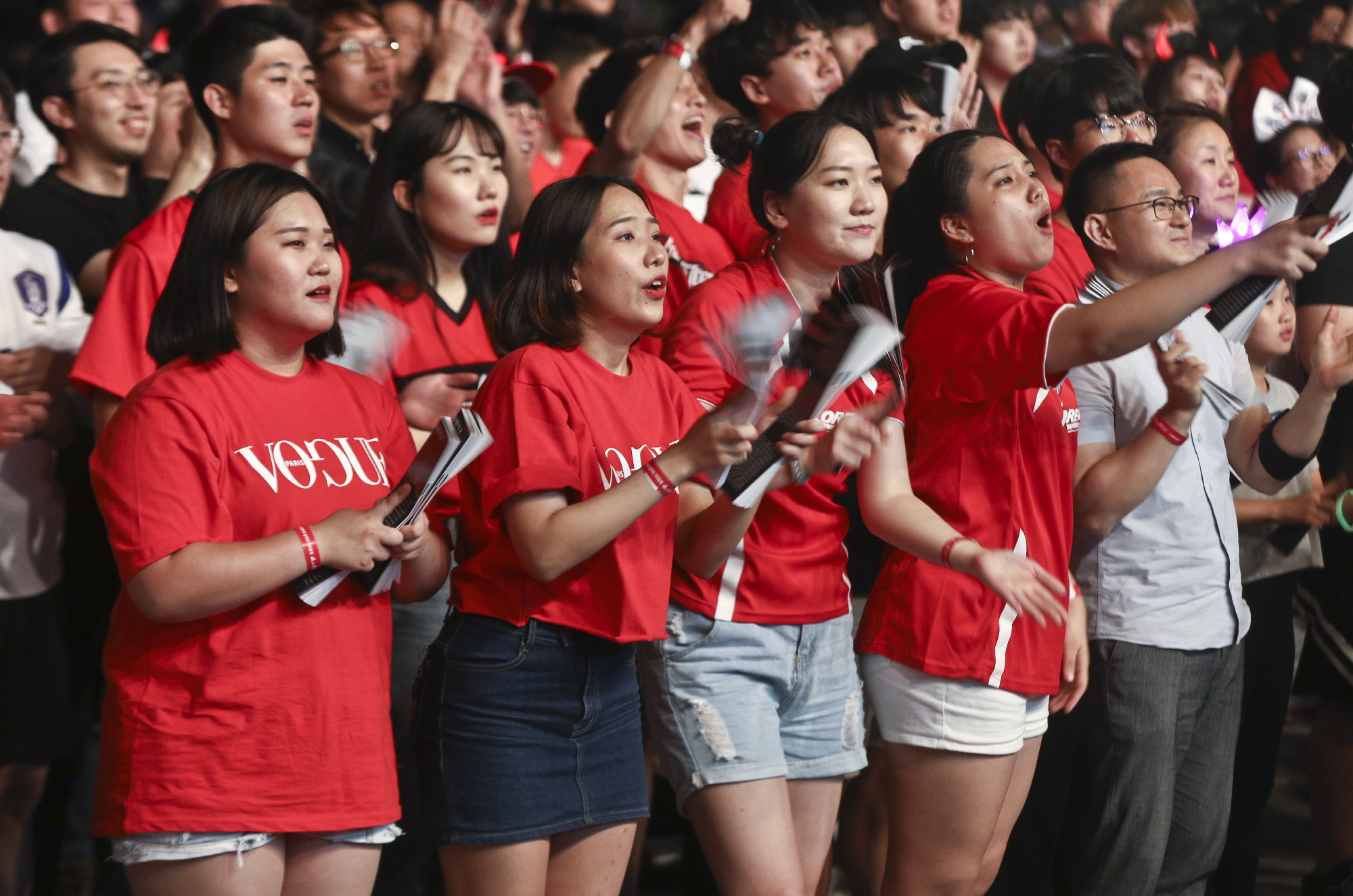 [서울=eoimage] 고성준 기자 = 2018 러시아 월드컵 F조 조별리그 1차전 대한민국대 스웨덴 경기가 열린 18일 오후 서울 광화문광장을 찾은 시민들이 열띤 응원을 하고있다. 2018.6.18