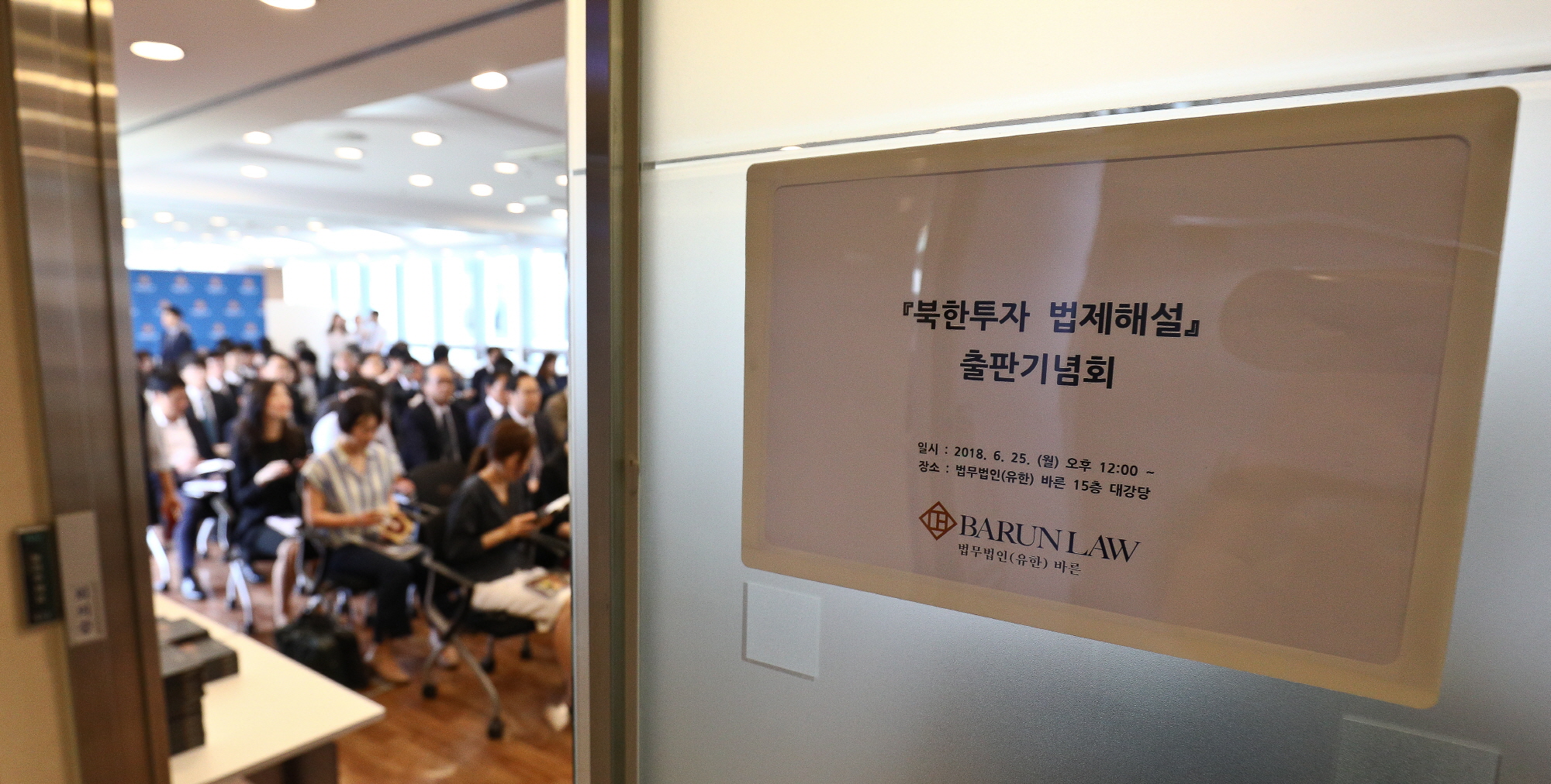 [서울=eoimage] 고성준 기자 = 25일 오후 서울 강남구 법무법인 바른 빌딩에서 열린 북한투자 법제해설 출판기념회에서 참석자들이 착석해 북한투자 법제해설을 경청하고있다. 2018.6.25