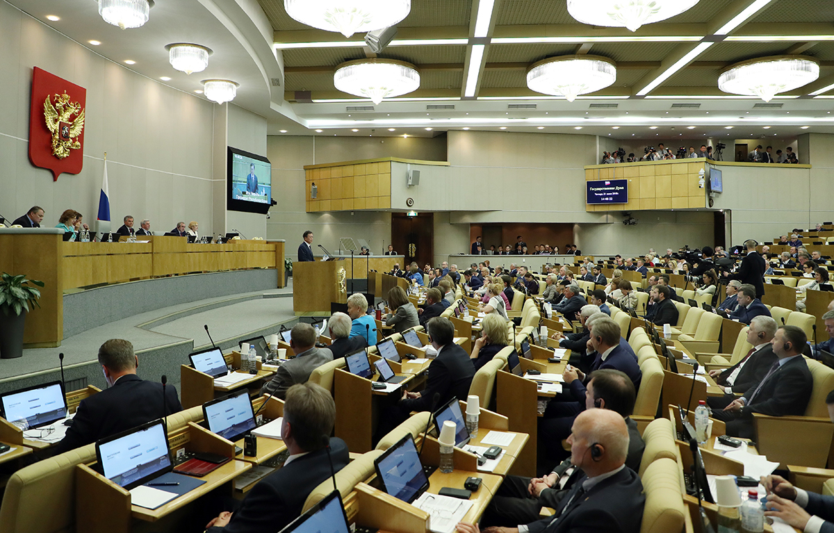 문재인 대통령이 21일(현지시간) 러시아 하원에서 한국 대통령 최초로 연설을 하고 있다. 2018.06.21