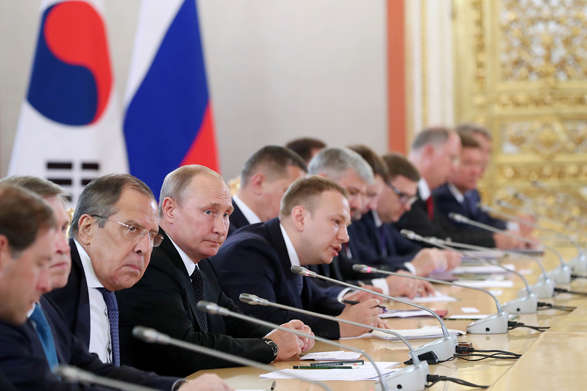 문재인 대통령이 22일 러시아 모스크바 크레믈린 대궁전에서 열린 한-러 확대 정상회담에서 모두발언하고 있다.