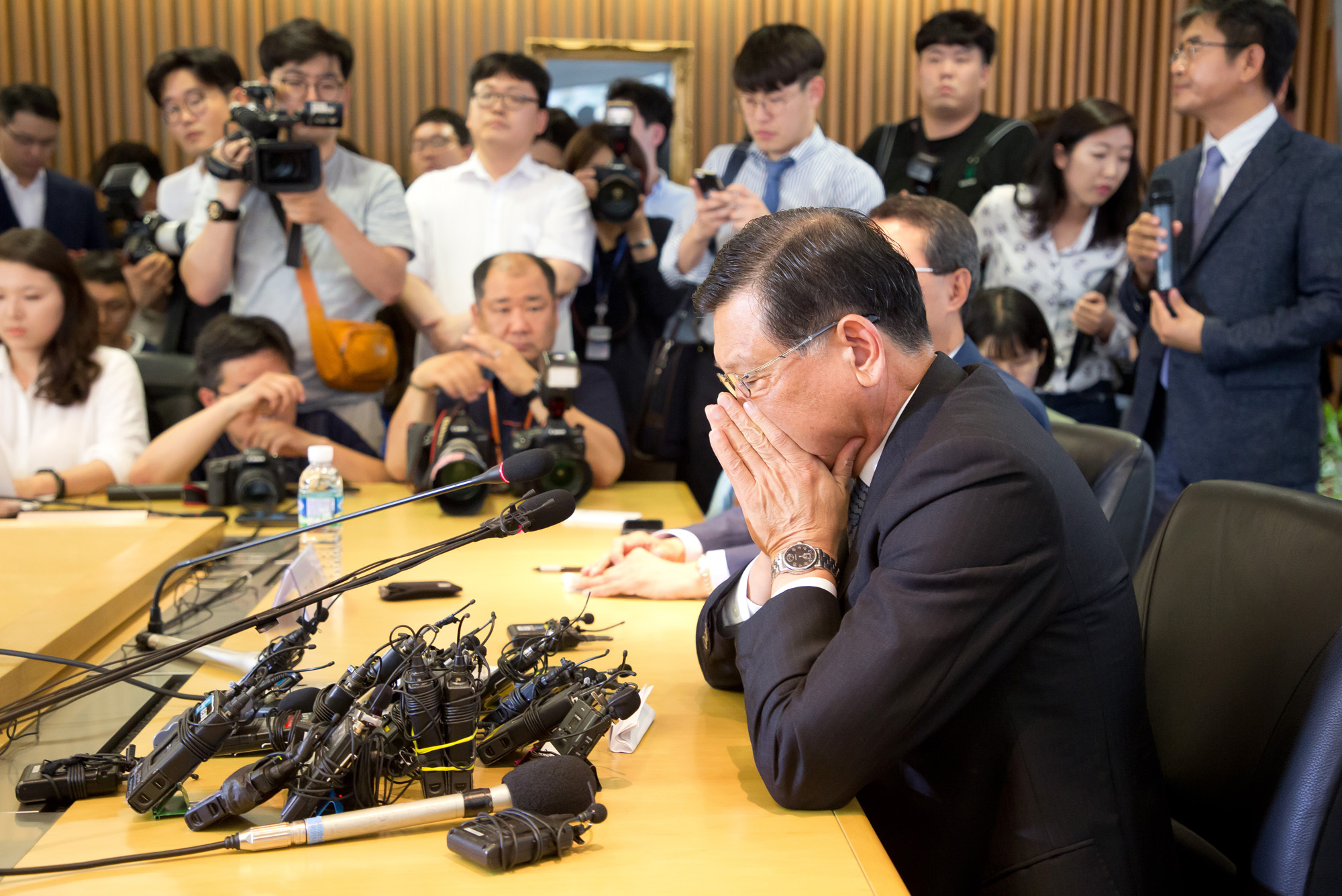 '기내식 대란' 관련 입장발표 박삼구 금호아시아나그룹 회장이 4일 오후 서울 금호아시아나 광화문 사옥에서 기자회견을 하고 있다.