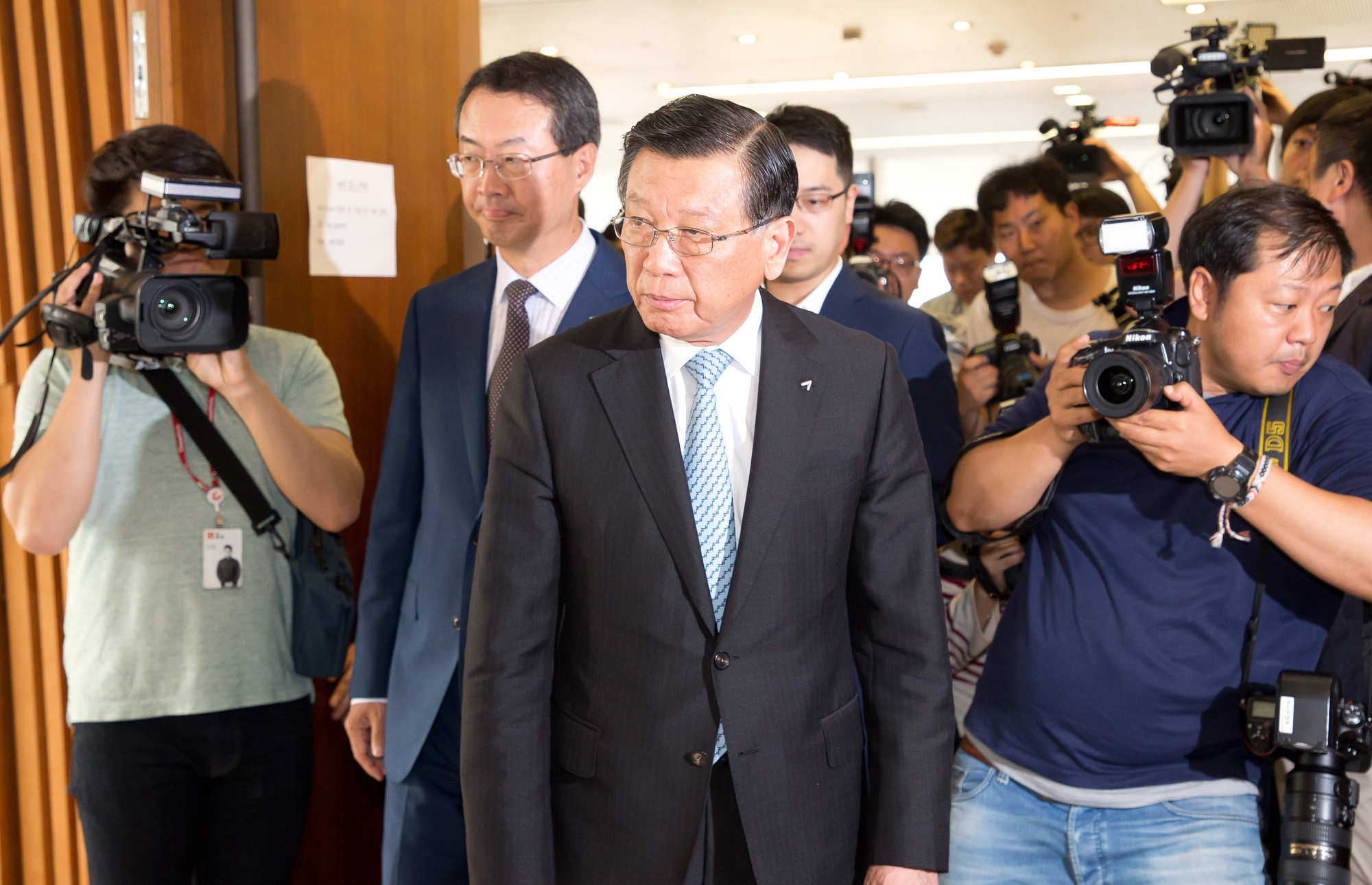 '기내식 대란' 관련 입장발표 박삼구 금호아시아나그룹 회장이 4일 오후 서울 금호아시아나 광화문 사옥에서 기자회견을 마치고 퇴장하고 있다.