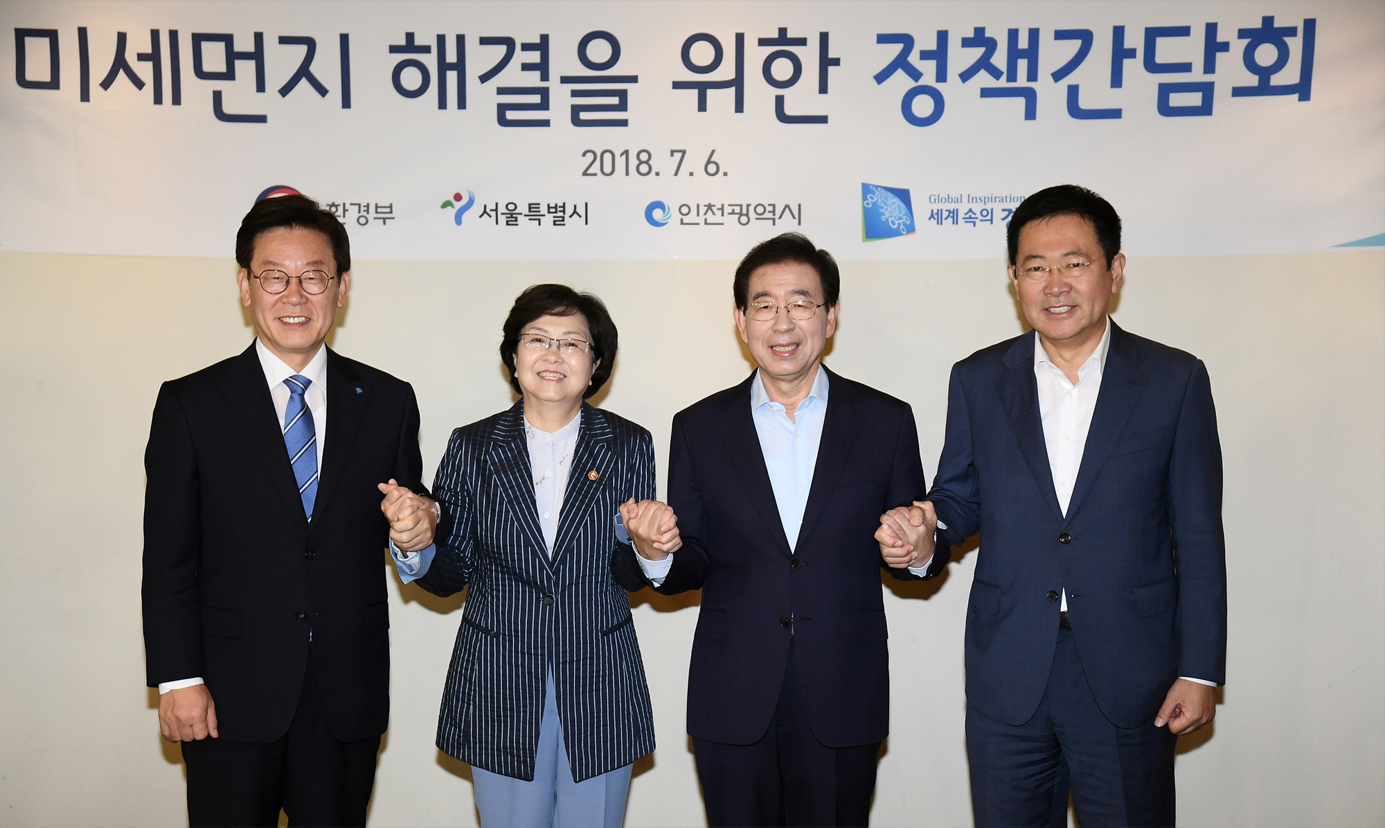 박원순 서울특별시장이 6일 오전 서울 중구 달개비에서 열린 수도권 광역자치단체장 간담회에서 인사말을 하고 있다. 서울시 제공