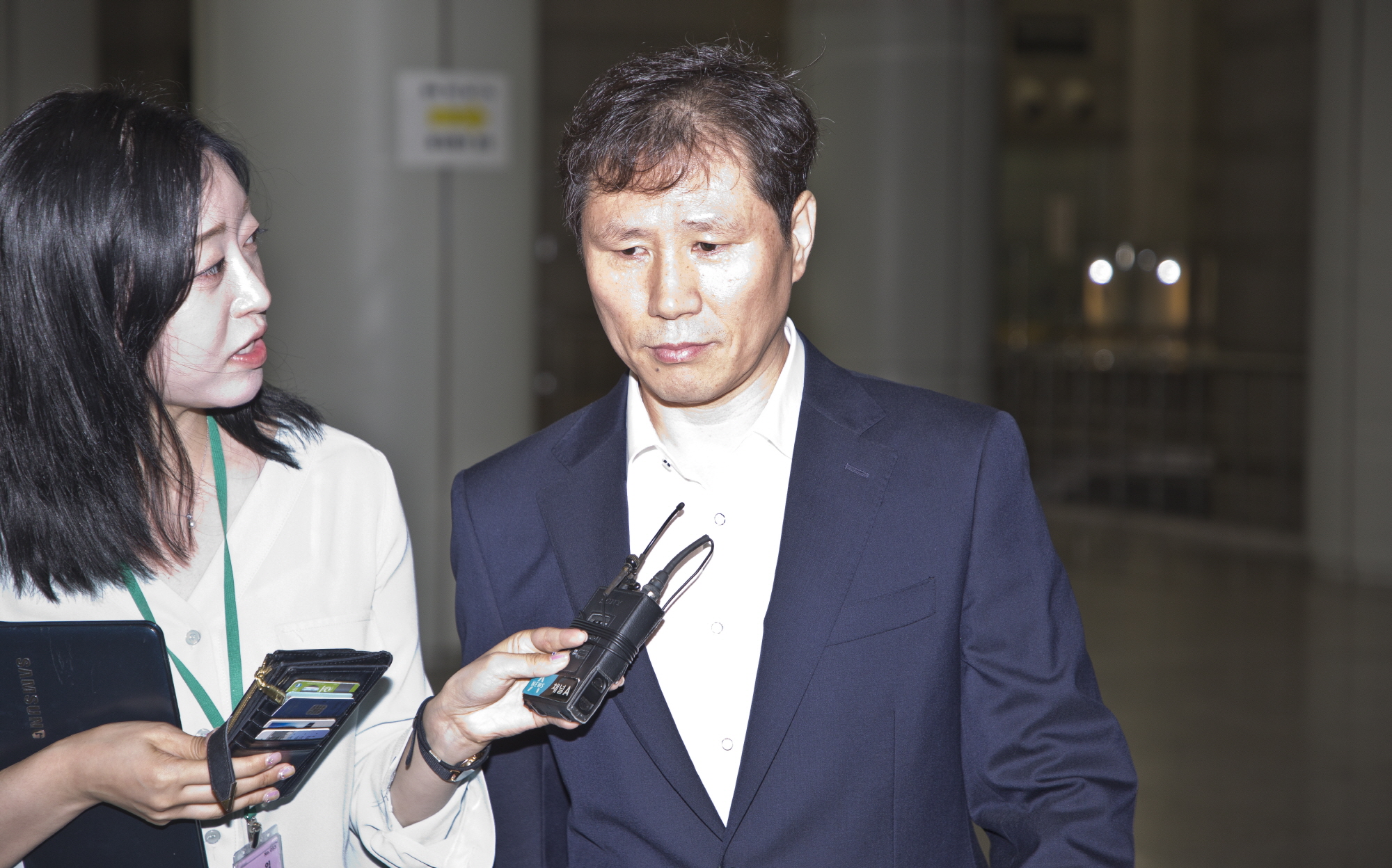 [서울=eoimage] 고성준 기자 = 국정원의 특활비 상납 관련 혐의로 기소된 안봉근 전 청와대 홍보비서관이 12일 오후 서울 서초구 서울중앙지방법원에서 열린 선고공판에 출석하고 있다. 2018.7.12