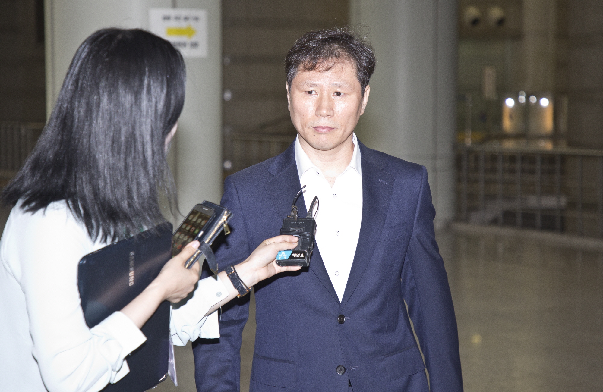 [서울=eoimage] 고성준 기자 = 국정원의 특활비 상납 관련 혐의로 기소된 안봉근 전 청와대 홍보비서관이 12일 오후 서울 서초구 서울중앙지방법원에서 열린 선고공판에 출석하고 있다. 2018.7.12