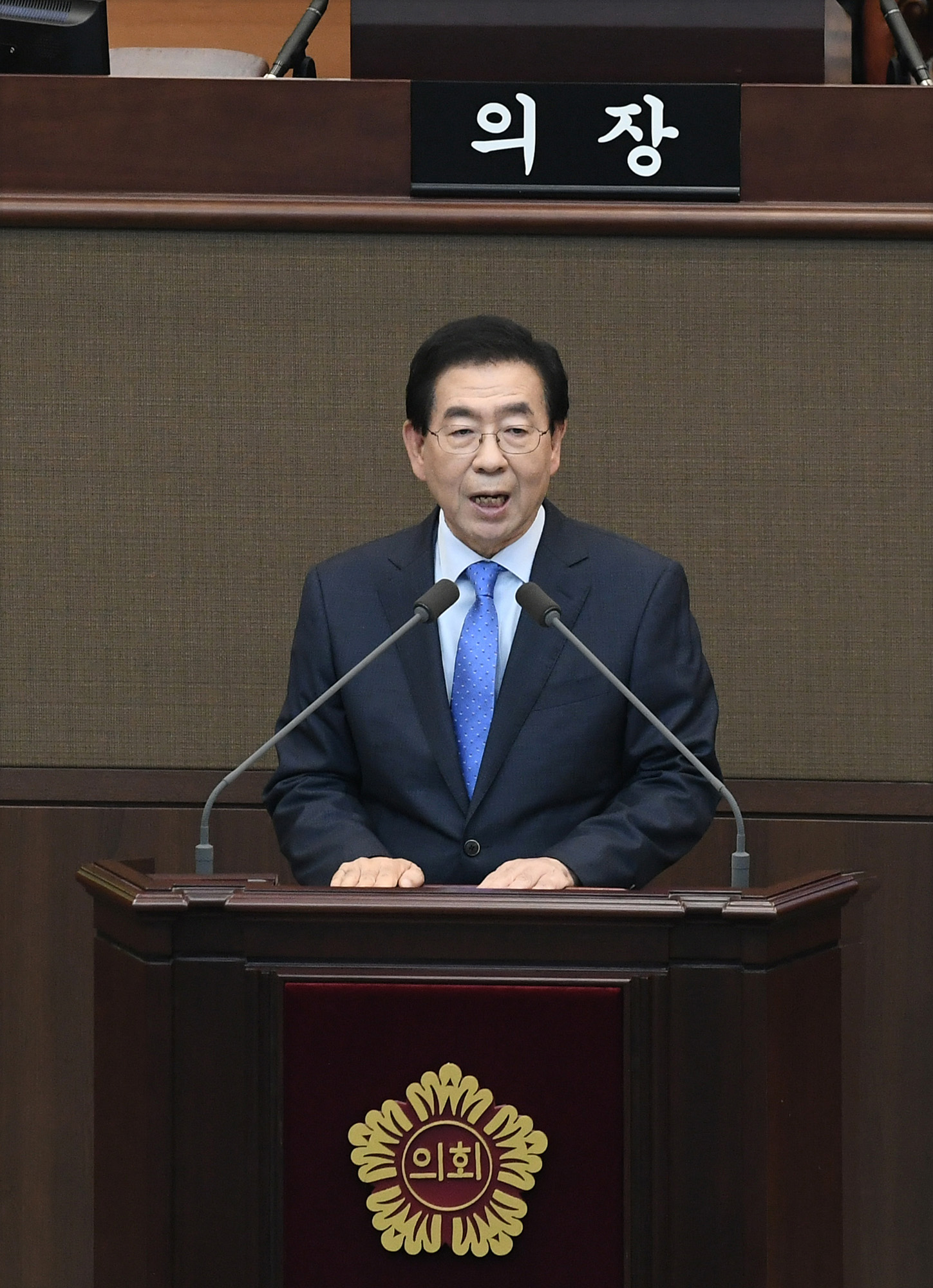 박원순 서울시장이 11일 오후 서울 중구 세종대로 서울시의회에서 열린 제10대 서울시의회 개원식 겸 제282회 임시회 개회식에서 축사를 하고 있다. 서울시 제공