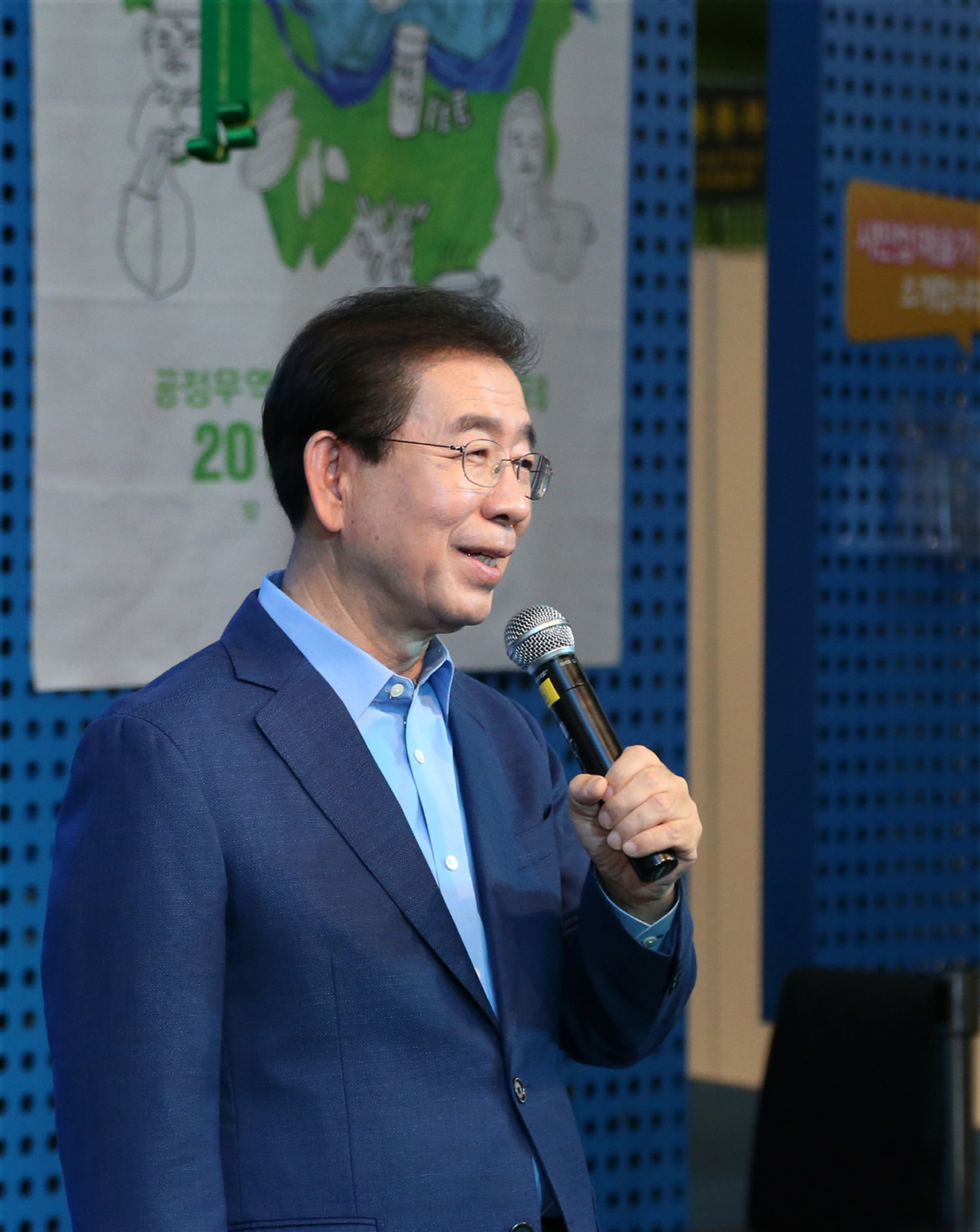 박원순 시장이 7일 열린 '공정무역도시 서울' 인증식 및 포럼에서 개회사를 하고 있다. 서울시 제공