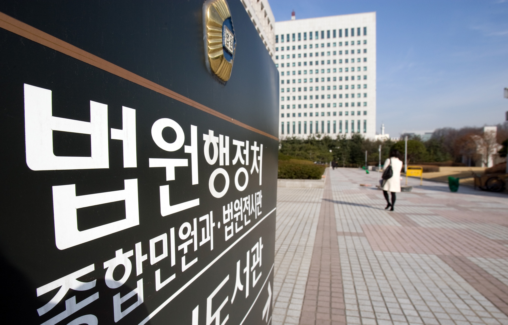 [서울=eoimage]임영무기자= 김용담 법원행정처장이 신영철 대법관의 촛불재판개입 의혹을 조사중에 있다. 사진은 대법원의 법원행정처의 입간판. 2009.03.12 eomaster@eoimage.com(끝)