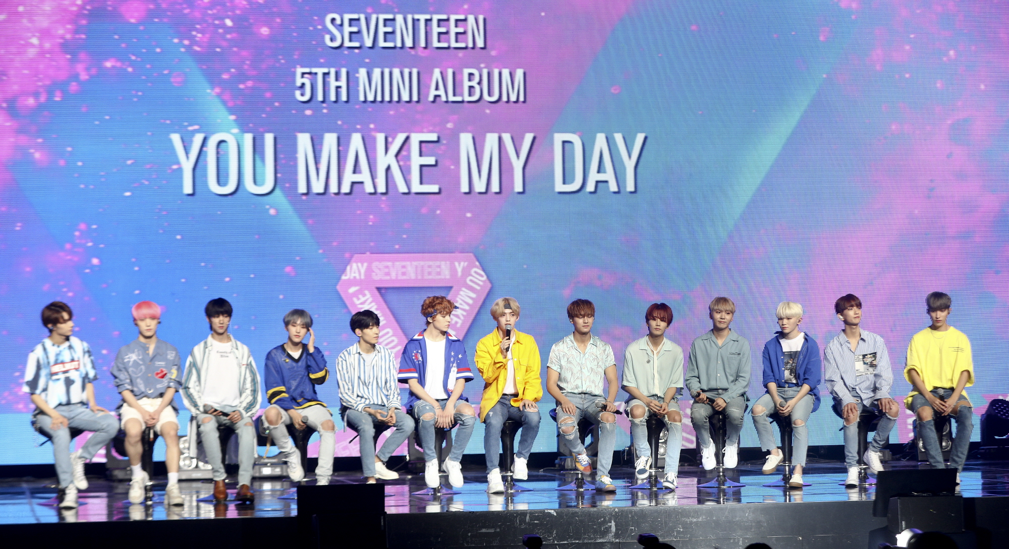 [서울=eoimage] 고성준 기자 = 16일 오후 서울 용산구 블루스퀘어에서 열린 세븐틴 미니 5집 앨범 'YOU MAKE MY DAY(유 메이크 마이 데이)' 발매 기념 쇼케이스가 열리고 있다. 2018.7.16